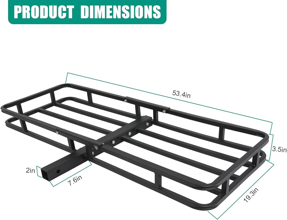 سعة تخزين إضافية: يبلغ مقاس حامل البضائع حوالي 53 بوصة طولًا × 19.3 بوصة عرضًا × 3.5 بوصة ارتفاعًا، ويضيف حوالي 7 أقدام مربعة مساحة تخزين فورية لسيارتك