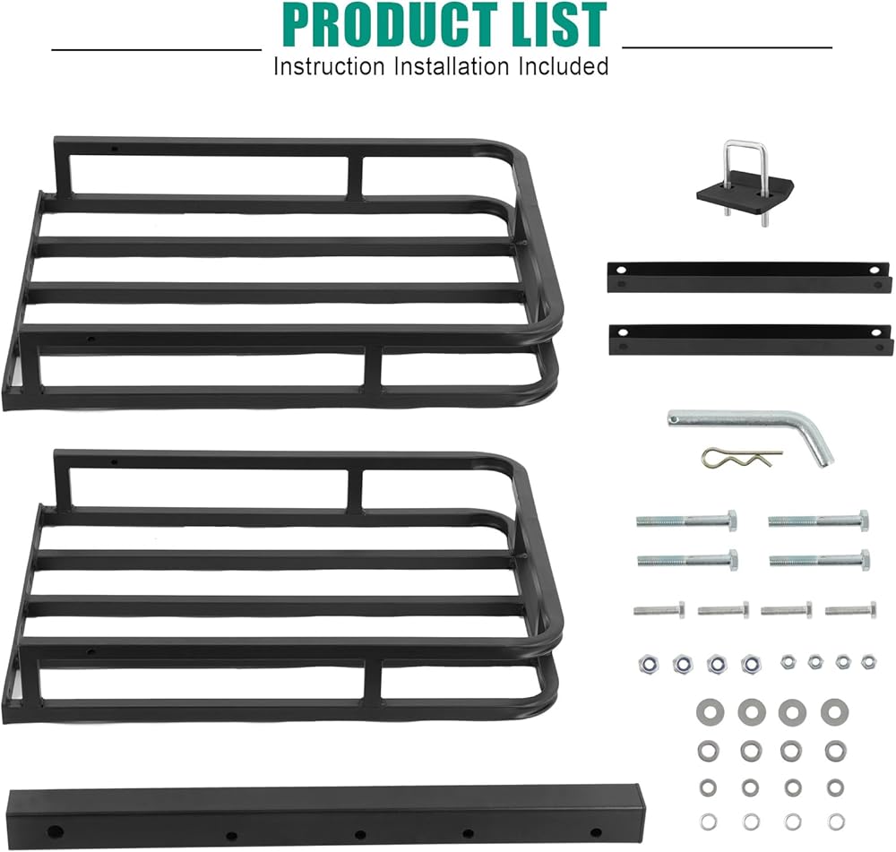 تركيب سهل: تم تصميم حامل وصلة ربط الحمولة الخاص بنا لسهولة التجميع والتركيب، ويناسب أي جهاز استقبال وصلة ربط من الفئة III أو IV مقاس 2 بوصة. إذا كانت أي مكونات أجهزة تثبيت مفقودة أو معيبة، فيرجى الاتصال بنا على الفور وسنقدم لك بكل سرور خدمة مجانية الاستبدال للتأكد من أنه يعمل بكامل طاقته وجاهز للاستخدام
