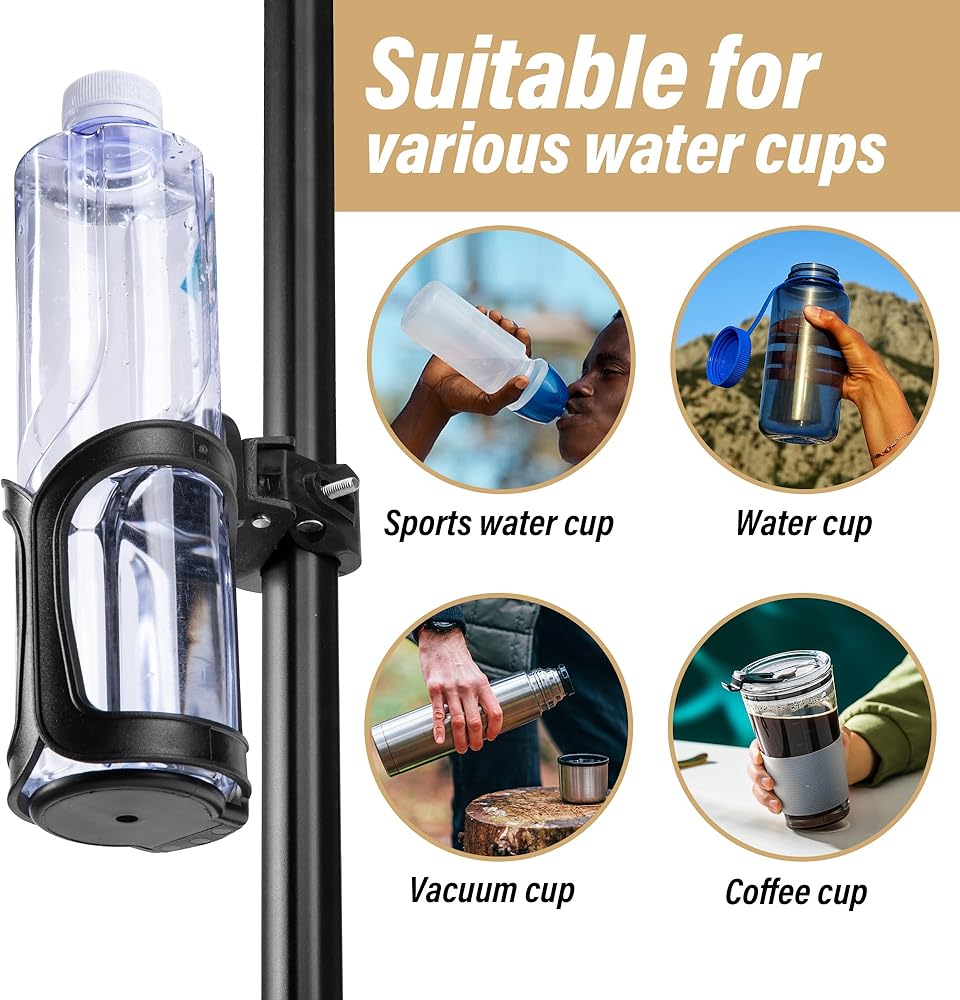 • Wide Application: Our cup holder is very suitable for outdoor use, can be installed on a hunting tree stand, deer stand, climbing sticks, bicycle, baby carriage, walker, scooter, cart, walker and stroller to spare your hands.