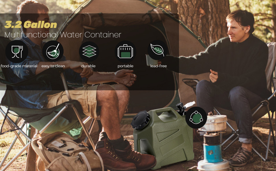 حاوية مياه للتخييم من ZOOFOX، إبريق مياه خالٍ من مادة BPA سعة 3.2 جالون مع حنفية ومقبض للحمل، تخزين مانع للتسرب، حامل مياه محمول لمستلزمات التخييم والتنزه في الهواء الطلق
