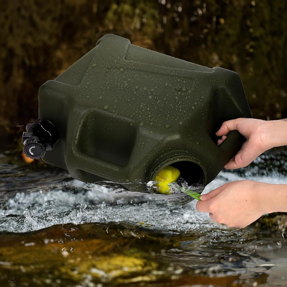 • سهلة التنظيف: حاويات مياه التخييم الخاصة بنا مجهزة بفتحة كبيرة لسهولة التعبئة، وهي كبيرة بما يكفي لوضع يدك بالداخل للتنظيف. يتم إرفاق فرشاة إسفنجية لتسهيل عملية التنظيف داخل الدلو. تسمح لك بتنظيف الجزء الداخلي بشكل أكثر كفاءة.