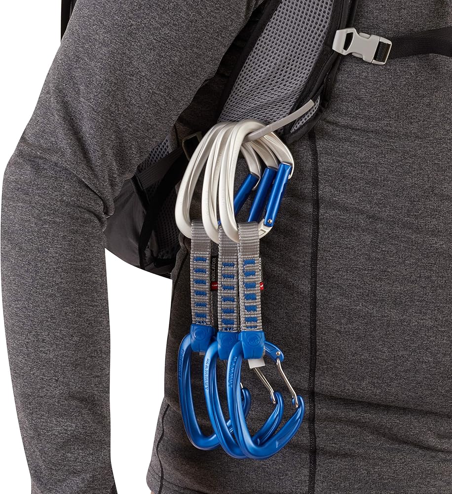 Mammut's Neon Speed is the perfect backpack for demanding climbing tours. In addition to its specific features, it makes use of the well-known CONTACT Basefit suspension system from the MTR series. This ensures that the Neon Speed sits perfectly on your back during even the most difficult climbing holds, thus allowing you to concentrate fully on your next move. Additional Information: - 210D Nylon Triple Ripstop - VENtech: Breathable, quick-drying materials - RV volume expansion on the front - 2 material carrying loops on shoulder straps - Rope fixation on the cover - Can be packed small in the zippered outer pocket Type: daypack Material Backpack: 100% Nylon Equipment Mounting options for equipment: Ski/snowboard attachment Dimensions Dimensions in cm (H x B x D): 43 x 23 x 9 cm Weight Backpack weight: 410 g Backpack Application: Climbing Build: Padded back Version / Back length: Normal Volume Large Category: 15 - 30 l l Backpack Volume: 15 l Strap Chest Strap Waist Strap Features Characteristics: Stick attachment