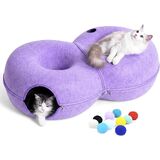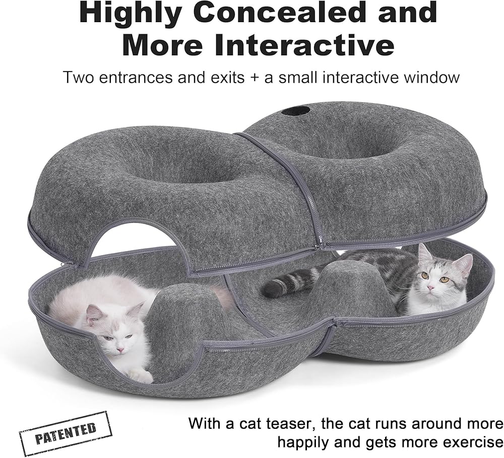سرير نفق كبير للقطط على شكل 8 للقطط الداخلية، كهف قطط بيكابو غير محدود مع 12 كرة لعبة، نفق دونات للقطط يصل وزنها إلى 30 رطلاً (رمادي داكن، L 38x24x11in)
