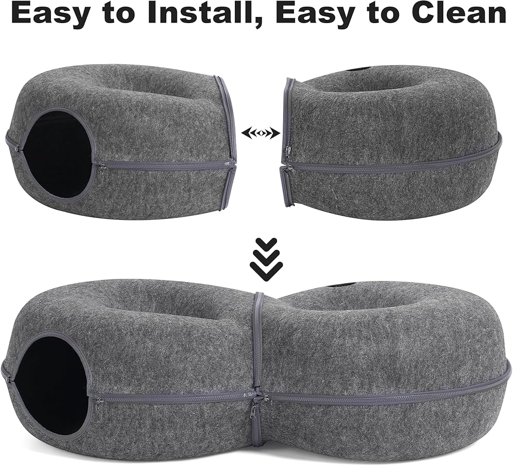 سهل التخزين والتنظيف: يتم تركيب سرير القطط النفقي وتفكيكه بسحابات، وهو سهل التشغيل والحمل. في الحياة اليومية، استخدمي مكشطة الشعر والمناديل المبللة لتنظيفه ببساطة لجعله مرتبًا ونظيفًا
