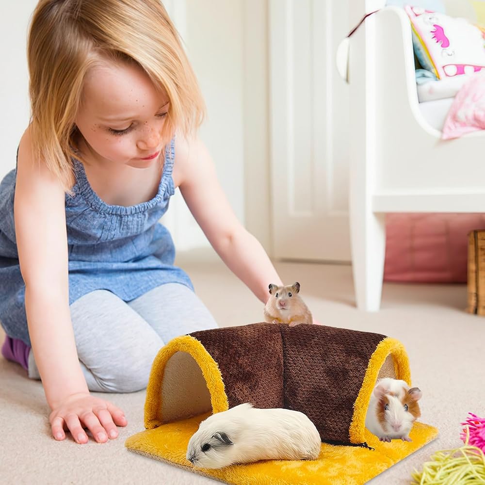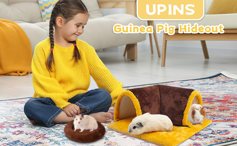 مخبأ خنزير غينيا من UPINS، خنزير غينيا كبير الحجم قابل للفصل ونفق مع وسادة خنزير غينيا ألعاب خنزير غينيا الناعمة للأرانب القزمة، والشنشيلا، والهامستر، والقنافذ، والقوارض، والسحالي ذات العرف، والفئران