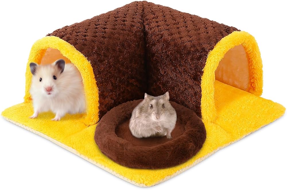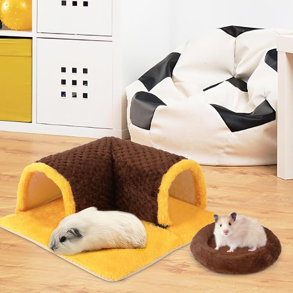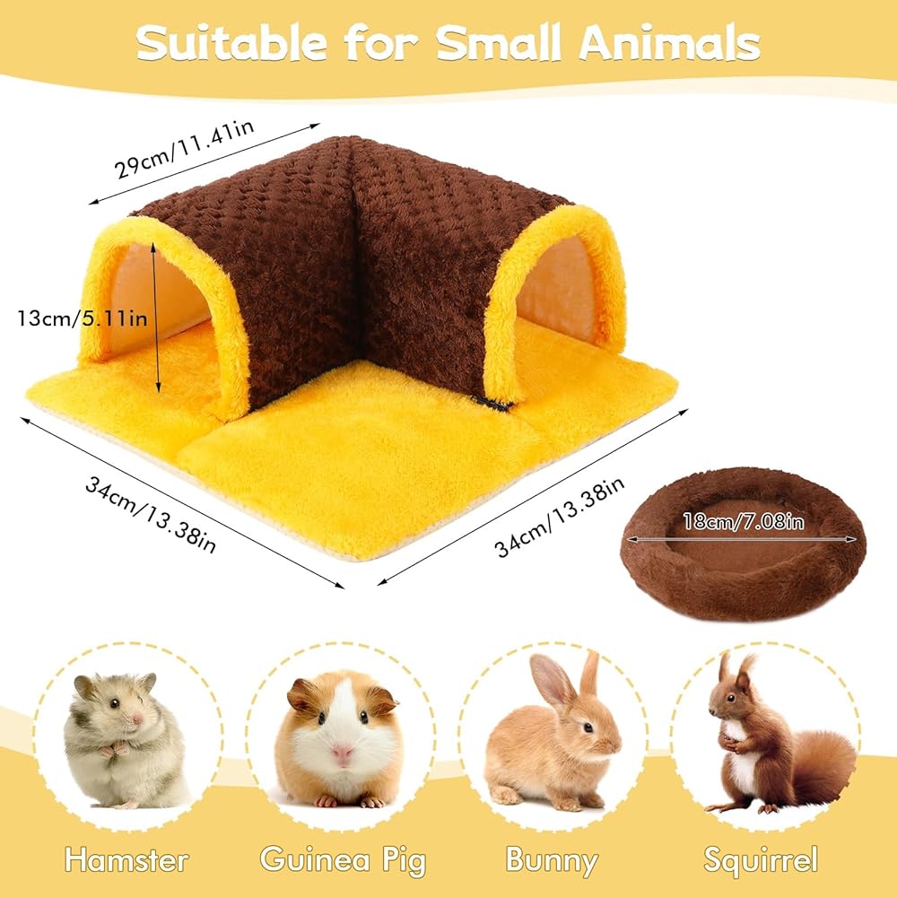 الحجم المناسب: يبلغ حجم مخبأ خنزير غينيا 34 × 34 × 14 سم، وسادة خنزير غينيا بحجم 22 × 20 سم، مناسبة للهامستر والفئران والشنشيلا والقوارض والخنازير الغينية والقنافذ والأرانب الأقزام والحيوانات الصغيرة الأخرى