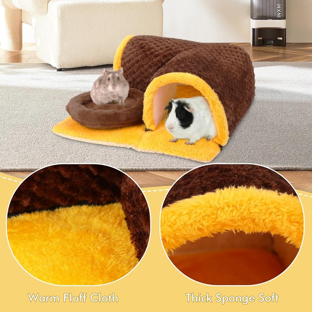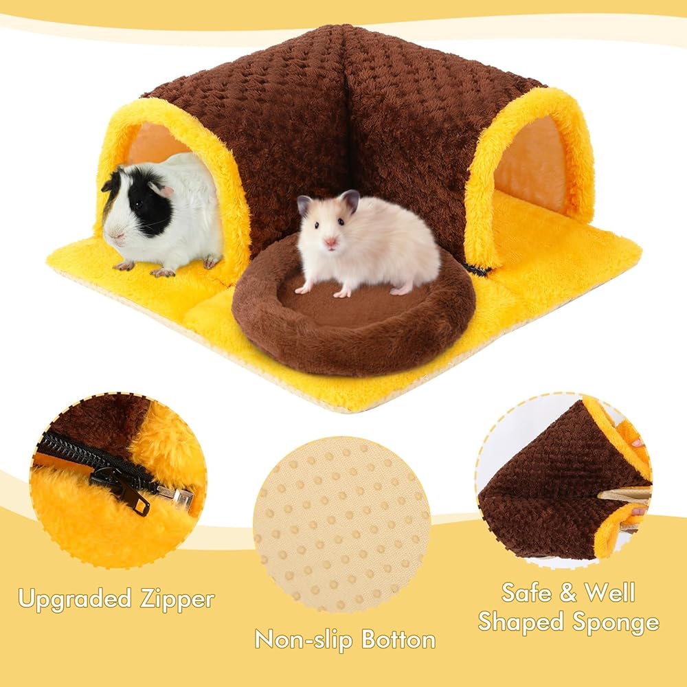 دافئ ومريح: مخبأ خنزير غينيا قابل للفصل، والجزء السفلي غير القابل للانزلاق يضمن بقاء سرير خنزير غينيا في مكانه. مع نسيج قطيفة ناعم، سيشعر أطفالك ذوي الفراء بالراحة والدفء في نفق خنزير غينيا، وهو مناسب للهامستر والفئران والشنشيلا والقوارض والخنازير الغينية والأرانب القزمية وغيرها من الحيوانات الصغيرة.
