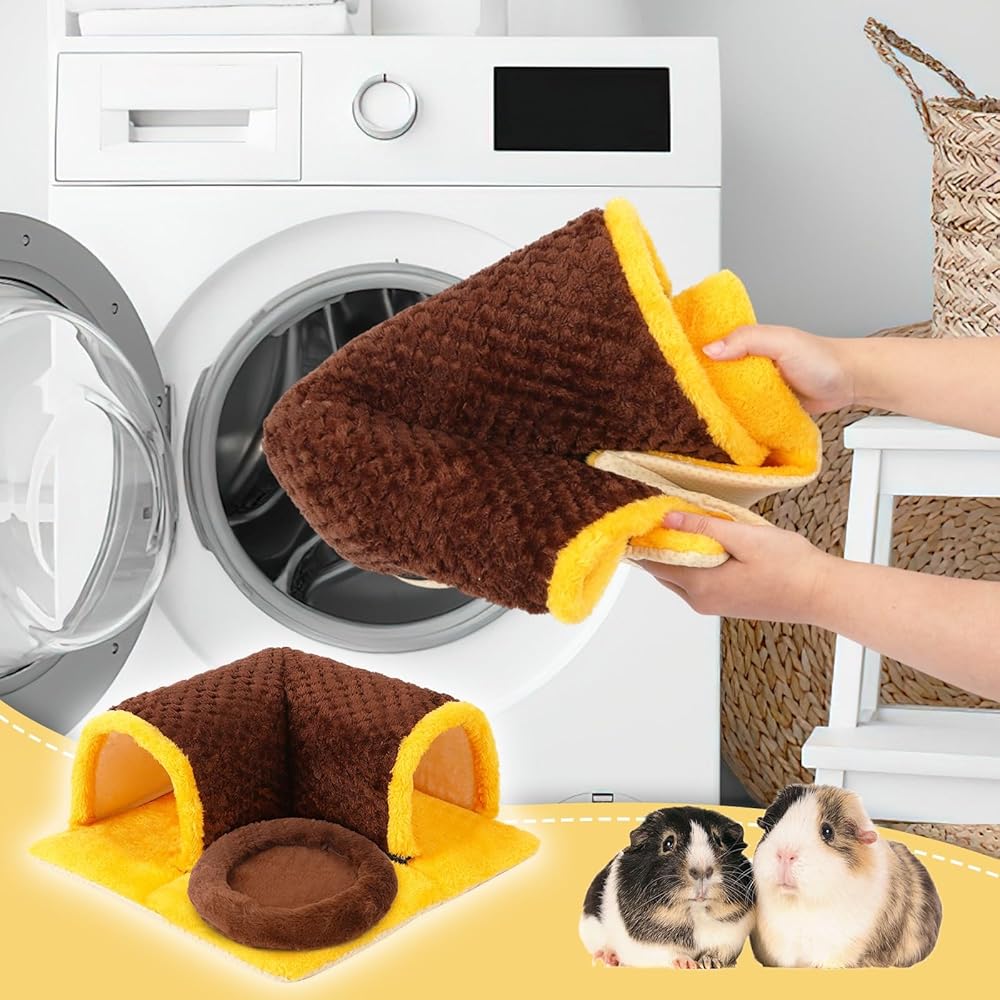 تصميم لطيف: تم تصميم مخبأ خنزير غينيا باللونين البني والأصفر، وهو عملي وليس من السهل أن يتسخ. سرير خنزير غينيا قابل للفصل، وهو مريح ويتمتع بمتانة جيدة. يمكن لنفق خنزير غينيا أيضًا تجنب قرص مخالب الحيوانات الصغيرة، وزيادة سمك الوسادة الداخلية، وجعل سرير خنزير غينيا صعب التشوه.