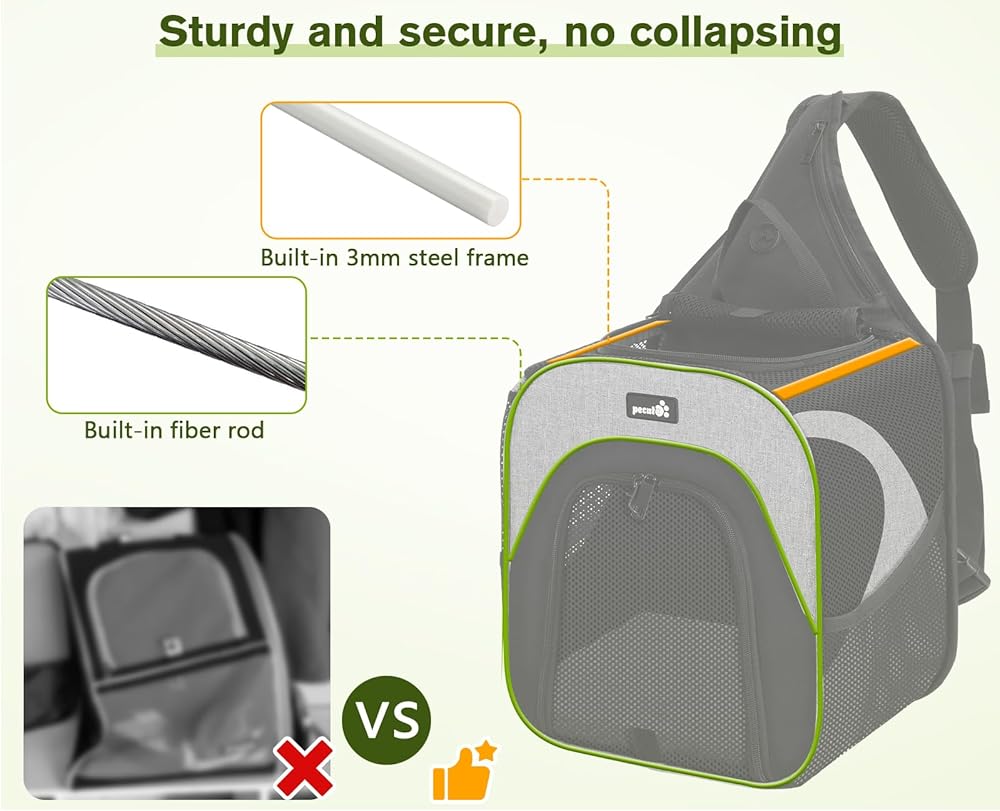 【ثابتة وغير قابلة للطي】تحتوي حقيبة حمل الحيوانات الأليفة الصغيرة على إطار فولاذي مدمج 3 مم وقضيب من الألياف الزجاجية لدعم هيكل الحقيبة بالكامل، مما يوفر مساحة أكثر أمانًا واستقرارًا للحيوانات الأليفة أثناء السفر. مجهزة بحزام أمان مدمج وسحاب قابل للقفل، وضمان أمان مزدوج، يمنع الحيوانات الأليفة من الهروب أثناء الرحلة.