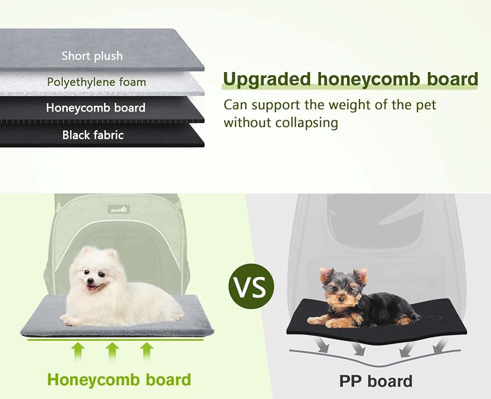 【وسادة ثابتة مزدوجة الجوانب】الجزء السفلي من حامل حبال الحيوانات الأليفة الخاص بنا مصنوع من نسيج قطيفة قصير ناعم، تمت ترقيته بلوحة سميكة على شكل قرص العسل بالداخل، مما يدعم جسم الحيوان الأليف ليظل أفقيًا دون أن يغرق، مما يجعل الحيوان الأليف أكثر راحة أثناء السفر. مزود بسحّاب، ويمكن إزالة الغطاء القماشي وغسله.