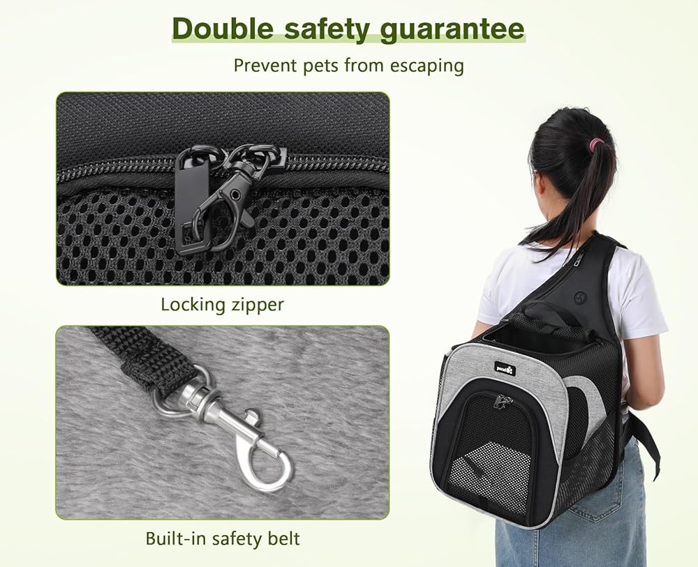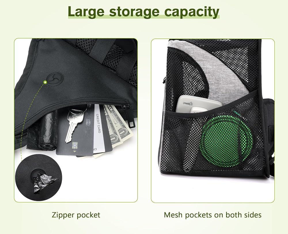 【هيكل حمل مثلث】أحزمة الكتف والخصر القابلة للتعديل يمكن أن تلتف بالكامل حول ظهرك، مما يوفر ثباتًا أكبر. أحزمة الكتف السميكة القابلة للحركة جيدة التهوية ومريحة وتقلل الضغط، مما يسمح لك بالتكيف مع الوضع المناسب بناءً على الاحتياجات الشخصية. بالإضافة إلى ذلك، يمكن استخدام الجيوب الشبكية الجانبية لتخزين الوجبات الخفيفة والألعاب للحيوانات الأليفة. يوجد أيضًا جيب بسحاب في الأعلى للبطاقات والمفاتيح وأكياس الفضلات وما إلى ذلك.