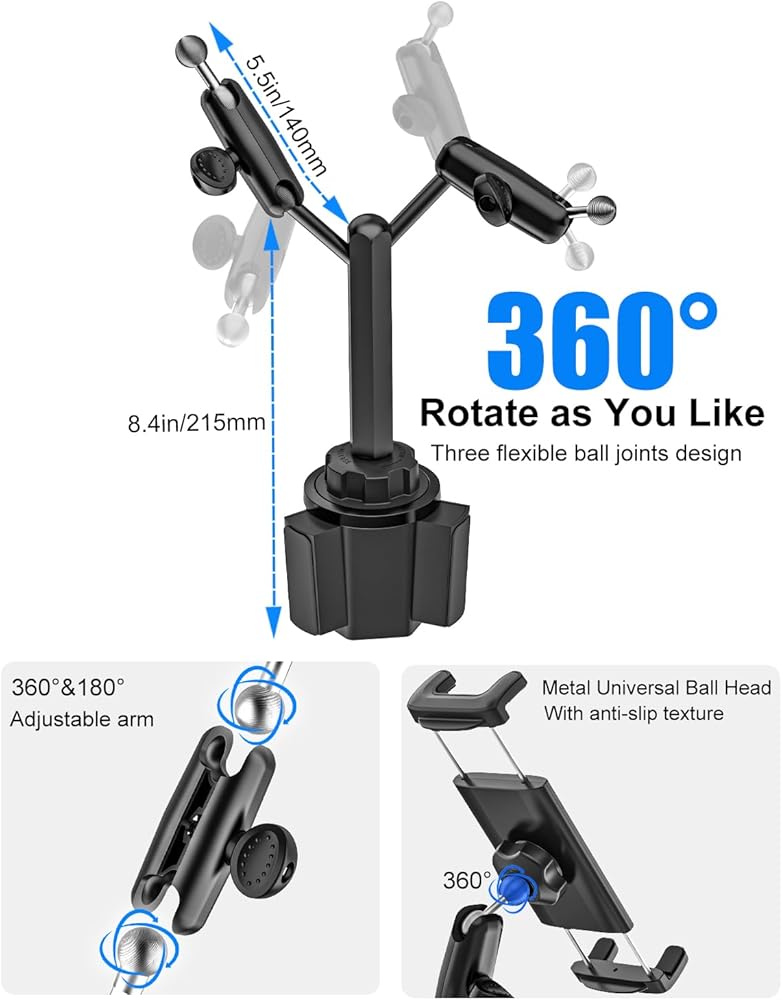 【Flexible Adjustment & Comfortable Viewing Angle】: The Car Cup Holder Tablet Mount supports multi-angle 360° adjustment function, providing you and your passengers with the best viewing experience. Whether it is vertical viewing or horizontal screen navigation, you can find the most comfortable viewing angle