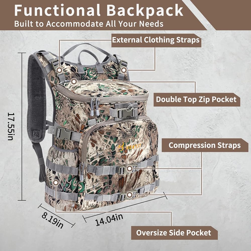 • متعددة الاستخدامات: تم تصميم حقيبة الظهر للصيد HUNTIT H3 هذه لتناسب جميع احتياجات Mobile Treestand Hunter. تم تصميمها مع وضع ميزة حزمة الإطار المبتكرة Hang-On في الاعتبار، ولكن يمكن استخدامها أيضًا كحقيبة ظهر مستقلة ذات تحميل علوي.