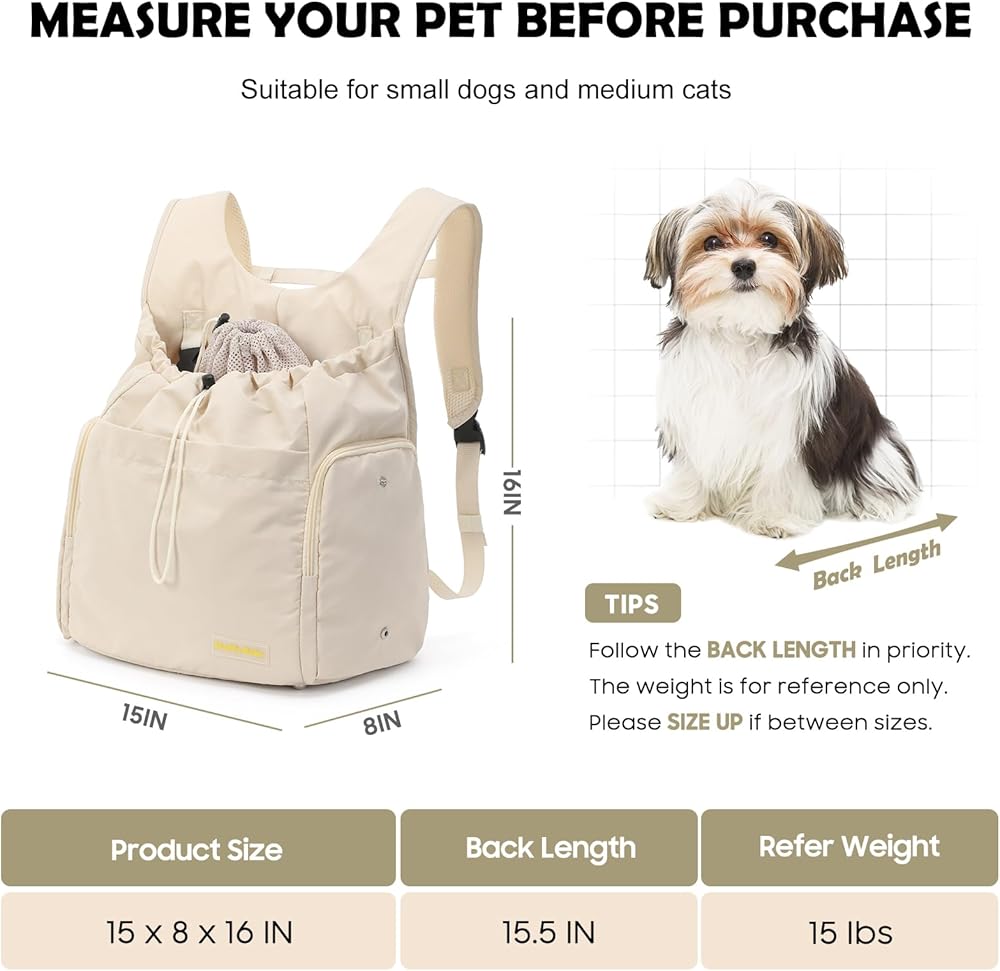 【حجم مثالي لحيوانك الأليف】: يبلغ مقاس حامل حقيبة الظهر الأمامية للكلاب 38.1 سم (طول) × 20.32 سم (عرض) × 40.64 سم (ارتفاع)، مما يدعم الحيوانات الأليفة التي يصل وزنها إلى 15 رطلاً. إنه مثالي للكلاب الصغيرة والمتوسطة الحجم والقطط والجراء والقطط الصغيرة. تأكد من الملاءمة المناسبة عن طريق قياس طول حيوانك الأليف (من الرقبة إلى الذيل) وارتفاعه (من الأرض إلى الكتف) قبل الشراء، مما يوفر مساحة واسعة لحيوانك الأليف للاسترخاء.