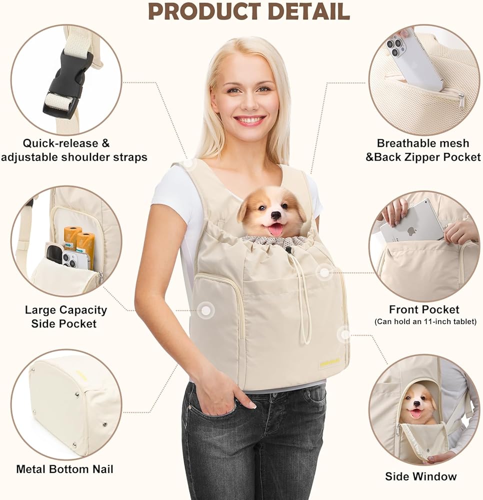【مساحة تخزين كبيرة للأساسيات】: تحتوي حاملات الكلاب الأمامية للكلاب الصغيرة على مساحة تخزين واسعة، بما في ذلك جيب أمامي موسع لجهاز iPad، وجيب على الجانب الأيمن لمكافآت الحيوانات الأليفة والأنسجة، وجيب خلفي مخفي بسحاب للأغراض المهمة مثل الهواتف وأجهزة الكمبيوتر المحمولة. معرفات. إنها تحافظ على جميع أغراضك الأساسية في متناول اليد أثناء السفر.