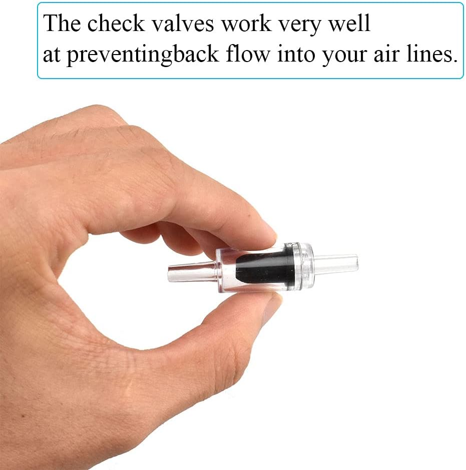 The check valves work very well at preventing back flow into your air lines.A simple way to protect your air-pumps from backflow.It can deliver air through the valve easily.They work well even for low pressure gasses.Just a little change in air flow.There is no backflow water to make it to the air pump.
