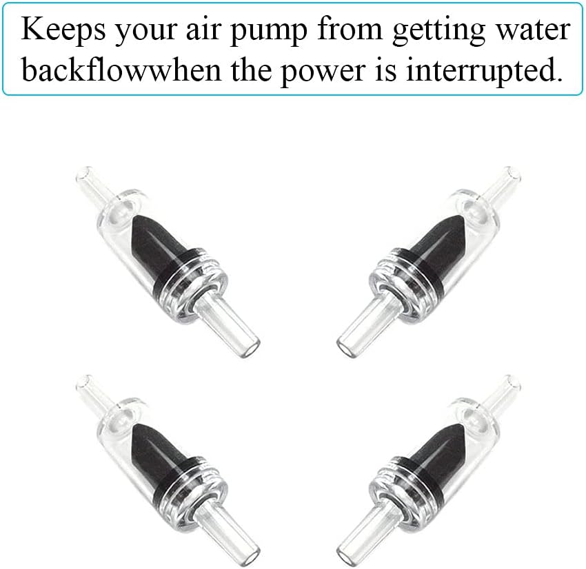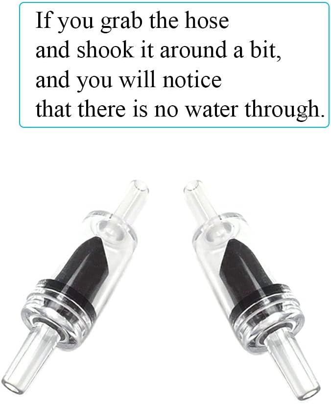 Keeps your air pump from getting water backflow when the power is interrupted.May cause the fish tank water flowing into the oxygen pump,resulting in the oxygen pump water damage or burn out.The check valve can solve this problem and your fish won't be lost.If you grab the hose and shook it around a bit,and you will notice that there is no water through.