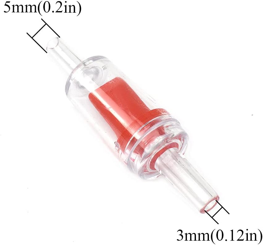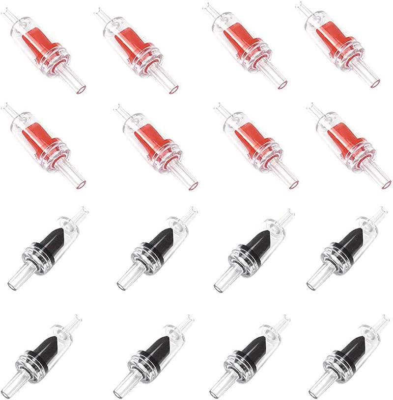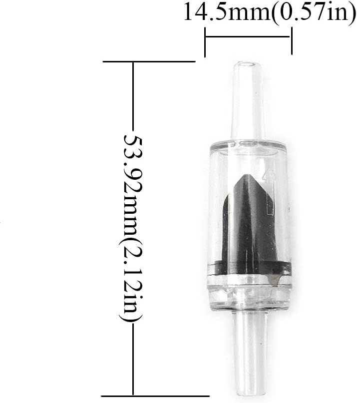 Description: Material:plastic Color:black Quantity:6 pcs Size:Pore diameter: 0.16in/4mm,overall size: 2.1*0.53in/5.4*1.35cm(L*D). They are good air flow.Simple and reliable.Not easy to crack.The check valves prevent water escaping back up the air lines when the pump timer shuts off.They allow airflow through and prevent siphoning.A simple way to protect your air-pumps from backflow.