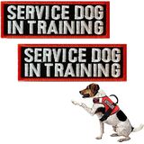 2 حزمة من رقع خدمة الكلاب للسرج، علامات مع رقع خطاف وحلقة حدود حمراء للسترات والأحزمة للكلاب في التدريب، كلب الخدمة، الدعم العاطفي