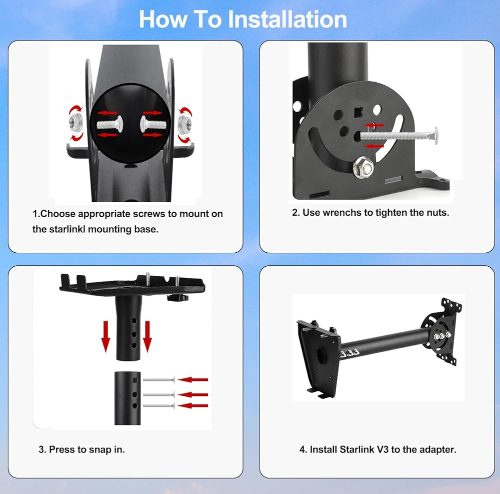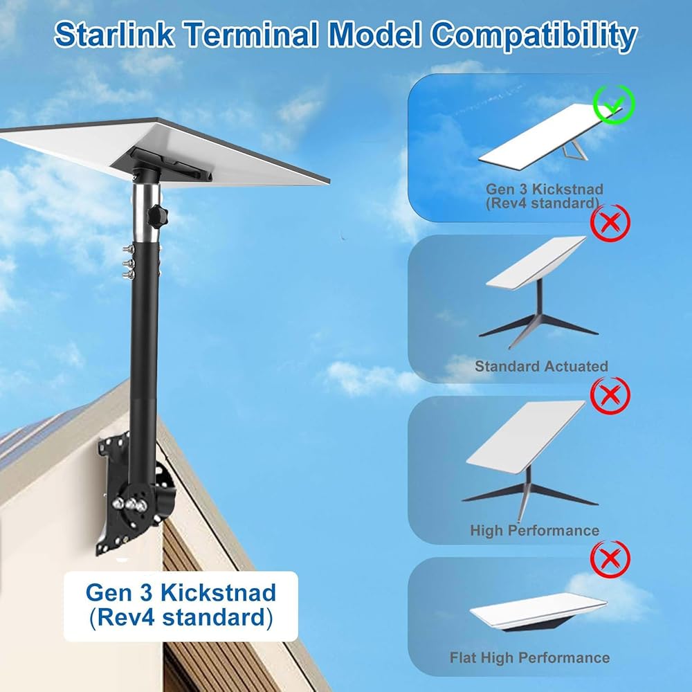 مجموعة تركيب Starlink لـ Starlink V3، مجموعة دعامة تثبيت معدنية لمجموعة Starlink Internet Kit Satellite Gen 3، محول تركيب القطب للقمر الصناعي لهوائي Starlink بما في ذلك ملحقات Starlink