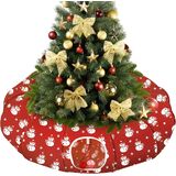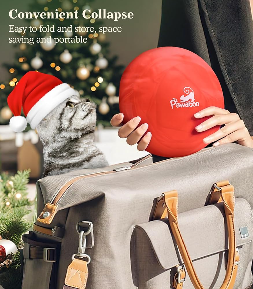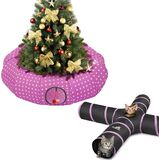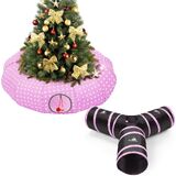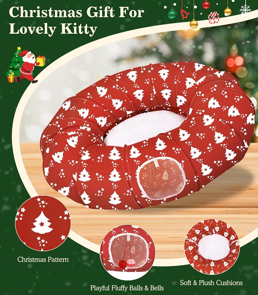 سرير نفق للقطط من باوابو تحت شجرة عيد الميلاد، 35.4 بوصة لعبة قطط عيد الميلاد نفق دائري مع كرة لعبة، نفق أنبوبي كيتي قابل للطي احتفالي لعيد الميلاد للحيوانات الصغيرة (شجرة عيد الميلاد الحمراء)