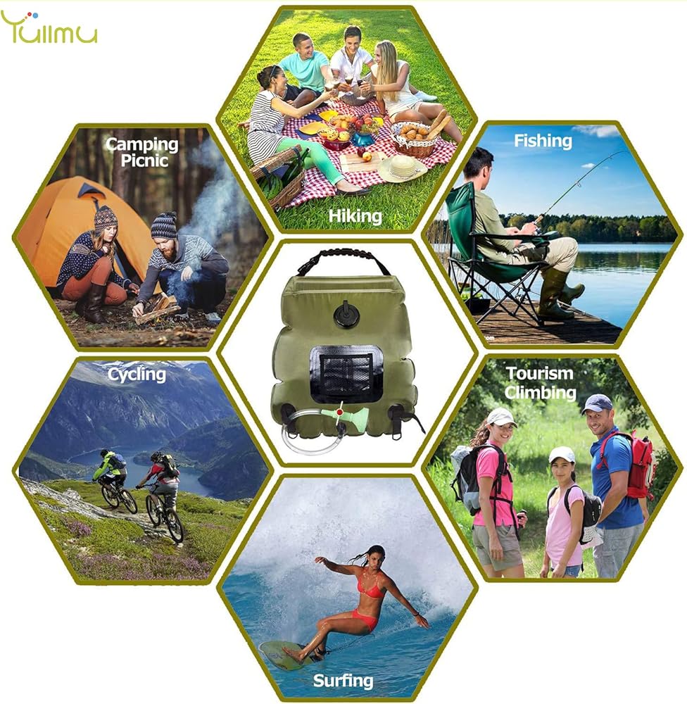 【سعة خفيفة الوزن وكبيرة】يمكن لحقيبة الاستحمام المخصصة للتخييم أن تحمل ما يصل إلى 5 جالون/20 لترًا من الماء للاستحمام في الهواء الطلق، مما يسمح لك بالاستمتاع بدش أفضل وأكثر انتعاشًا في أي مكان. بالإضافة إلى ذلك، يمكن طي حقيبة الاستحمام المحمولة الخاصة بنا وتخزينها بسهولة، وهي صغيرة جدًا وخفيفة الوزن، ويمكنك وضعها بسهولة في حقيبتك أو حقيبة الظهر أو صندوق السيارة.