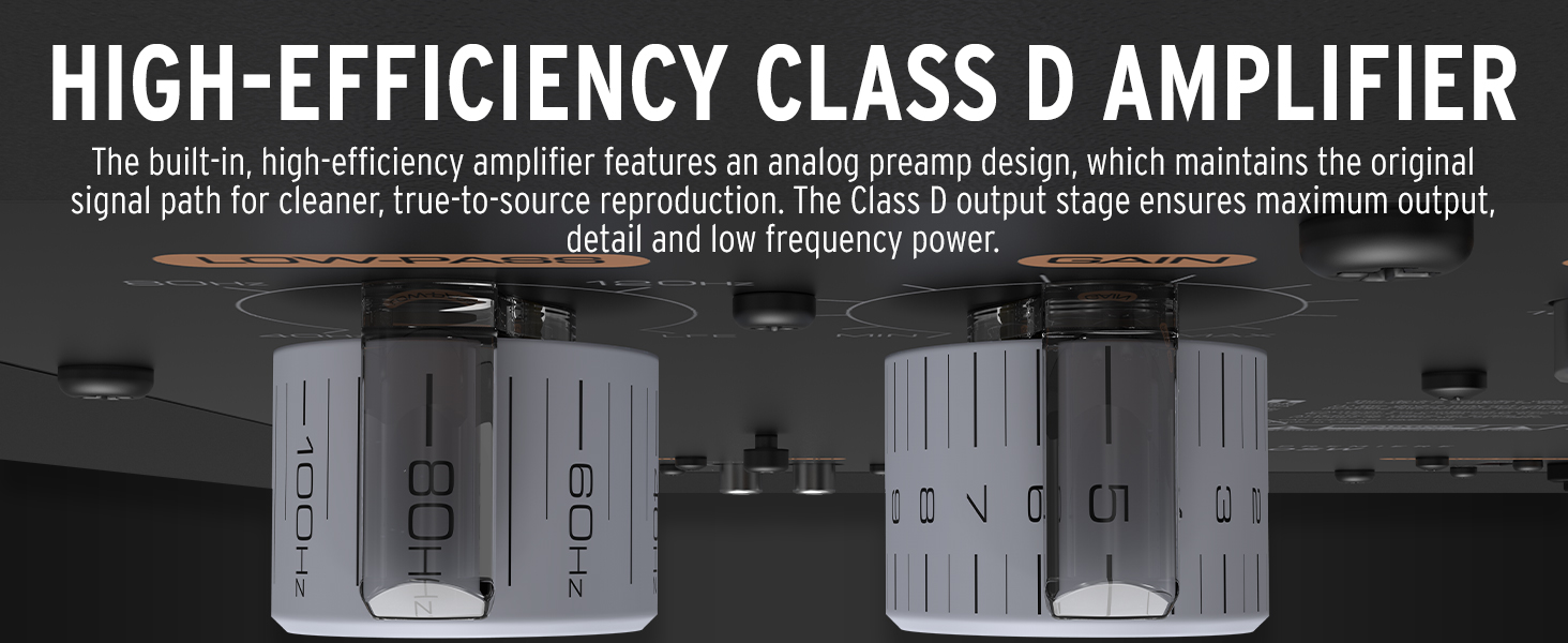 • مضخم صوت من الفئة D عالي الكفاءة: يتميز مضخم الصوت المدمج عالي الكفاءة بتصميم preamp تناظري، والذي يحافظ على مسار الإشارة الأصلي من أجل إعادة إنتاج أكثر نظافة وحقيقية للمصدر. تضمن مرحلة الإخراج من الفئة D أقصى قدر من الإخراج والتفاصيل والطاقة ذات التردد المنخفض.