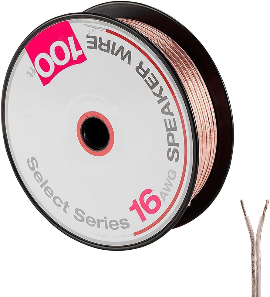 Klipsch RP-1000SW: مضخم صوت عالي الجودة مقاس 10 بوصات لصوت جهير فائق - حزمة من خشب الأبنوس مع سلك مكبر صوت بطول 100 قدم بطول 16 AWG + مقابس مكبر صوت نحاسية، 5 أزواج