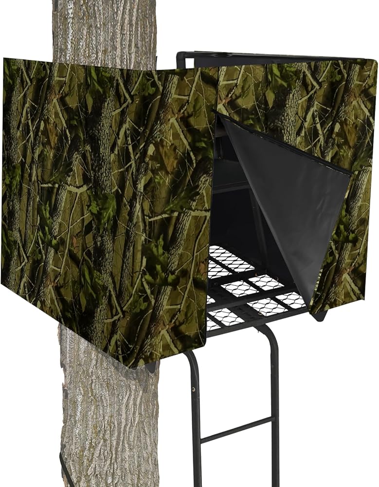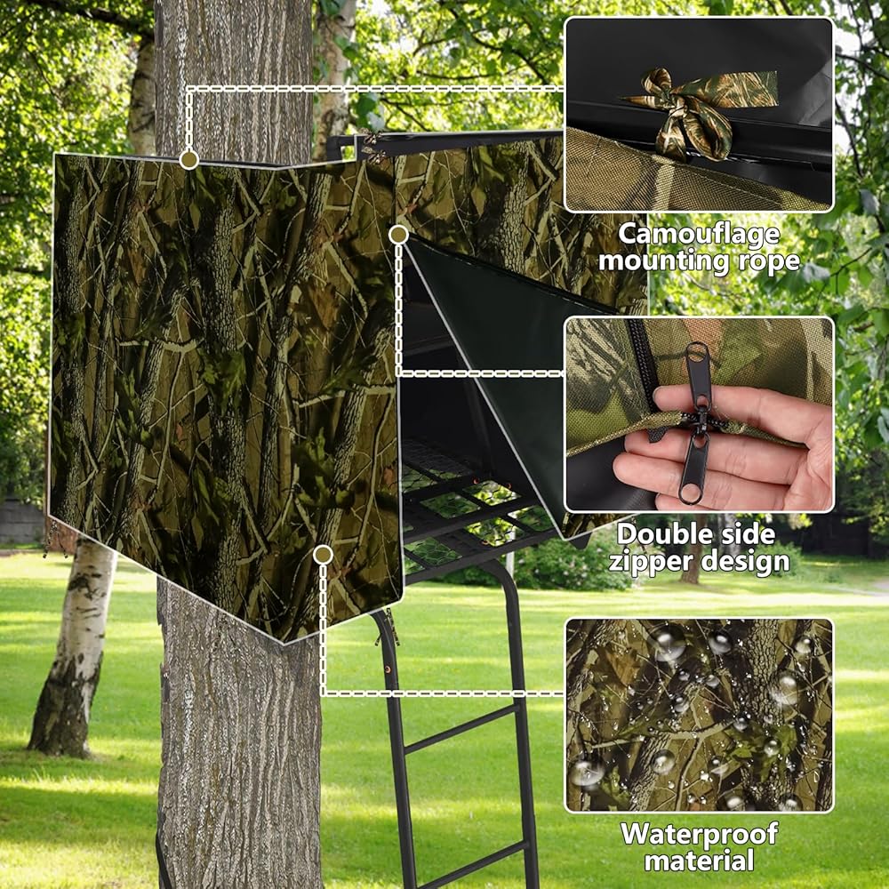 جي جيه ال غطاء ستارة حامل شجرة صيد الغزلان، حامل شجرة مموه عالمية، مجموعة ستائر مرتفعة من الغزلان لحامل شخصين، حامل شجرة مع اغلاق بسحاب، ملحقات حامل شجرة الصيد.