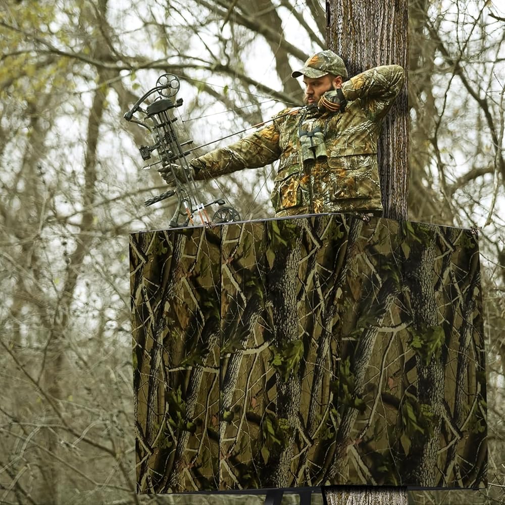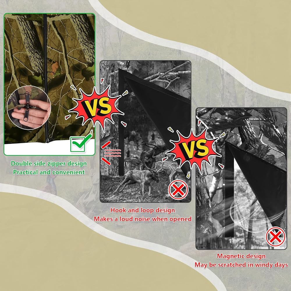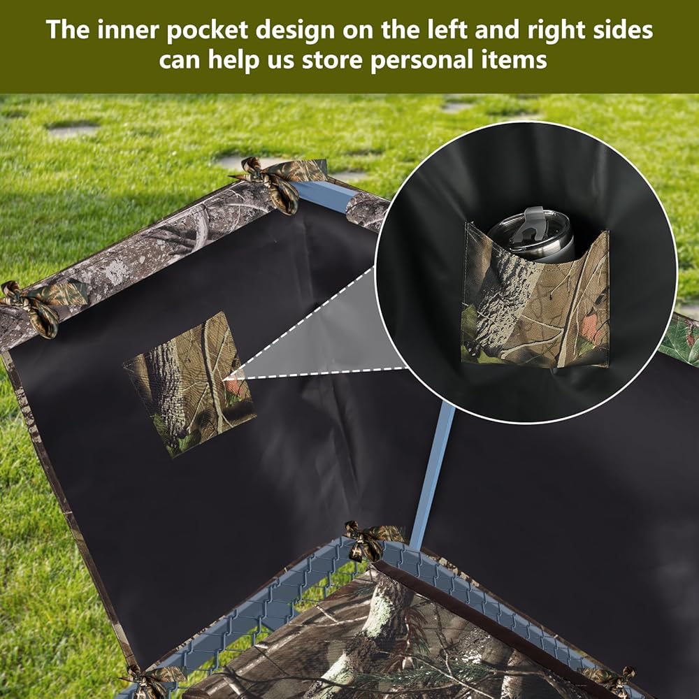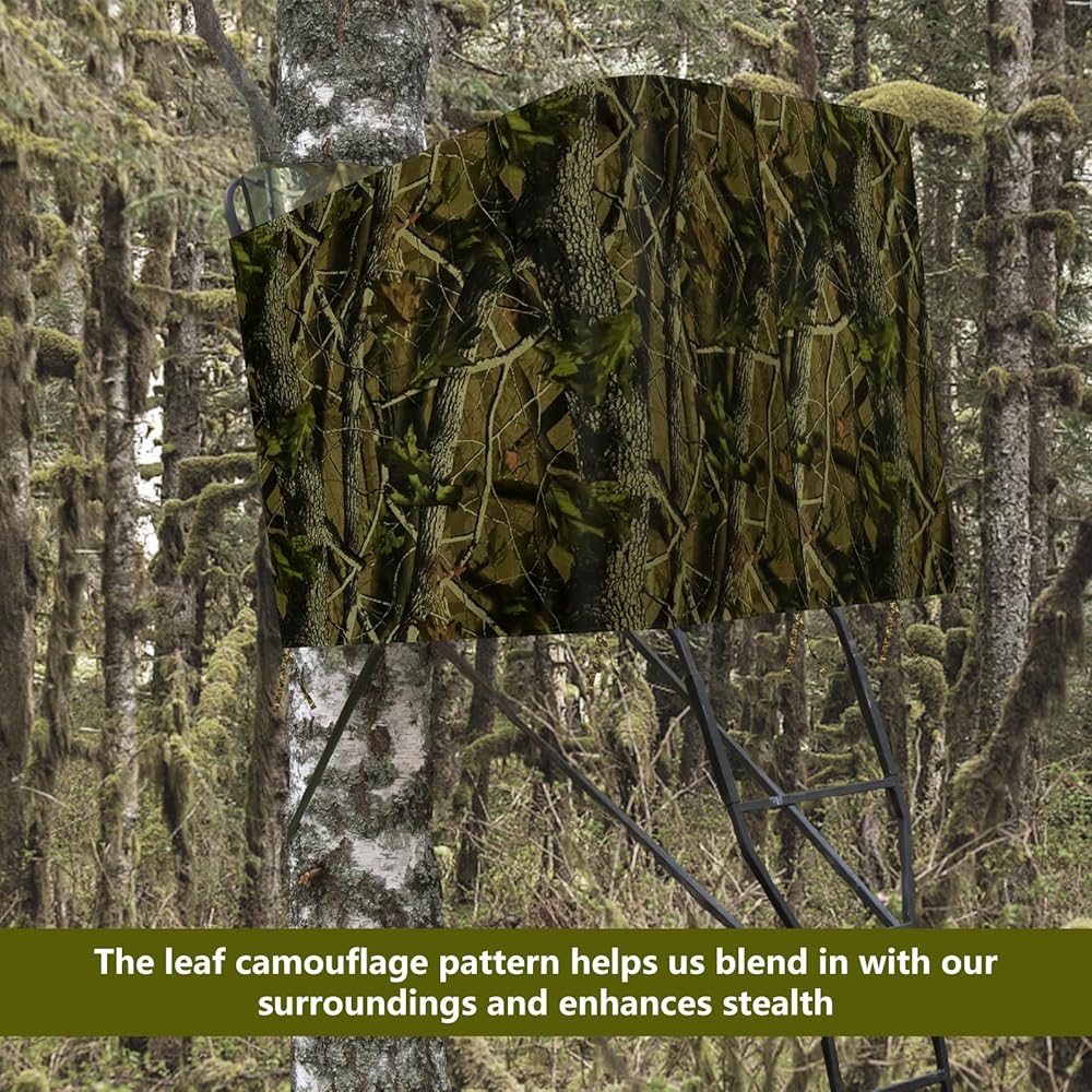 مادة متينة: ستارة حامل الشجرة للصيد مصنوعة من قماش أكسفورد 600D مع طلاء أسود من الداخل، مقاومة للماء والعوامل الجوية لإخفاء الحركة، قماش سميك لمنع الرياح والحفاظ على دفئك.