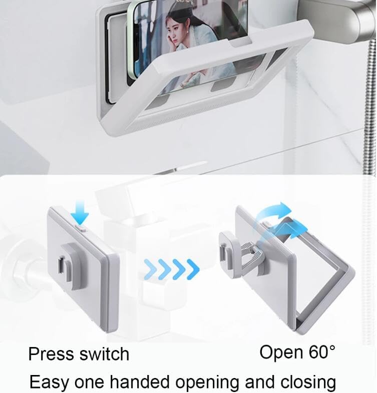 • 【IPx6 Waterproof】 Made of high quality ABS materials and featured with an internal waterproof circle and the clasp design, this waterproof shower phone mount is impervious to shower splashes and water vapour, helping you enjoy watching Youtube, Netflix, Tiktok, listening to music while showering.