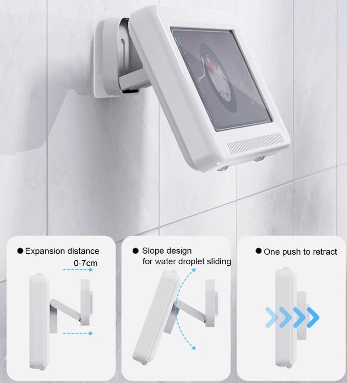 • Easy Installation & Removable This waterproof shower phone mount with drill-free design, you can freely choose different mounted positions and use this wall phone case stand for mirror, bathroom, bathtub, kitchen, shower, pool, etc