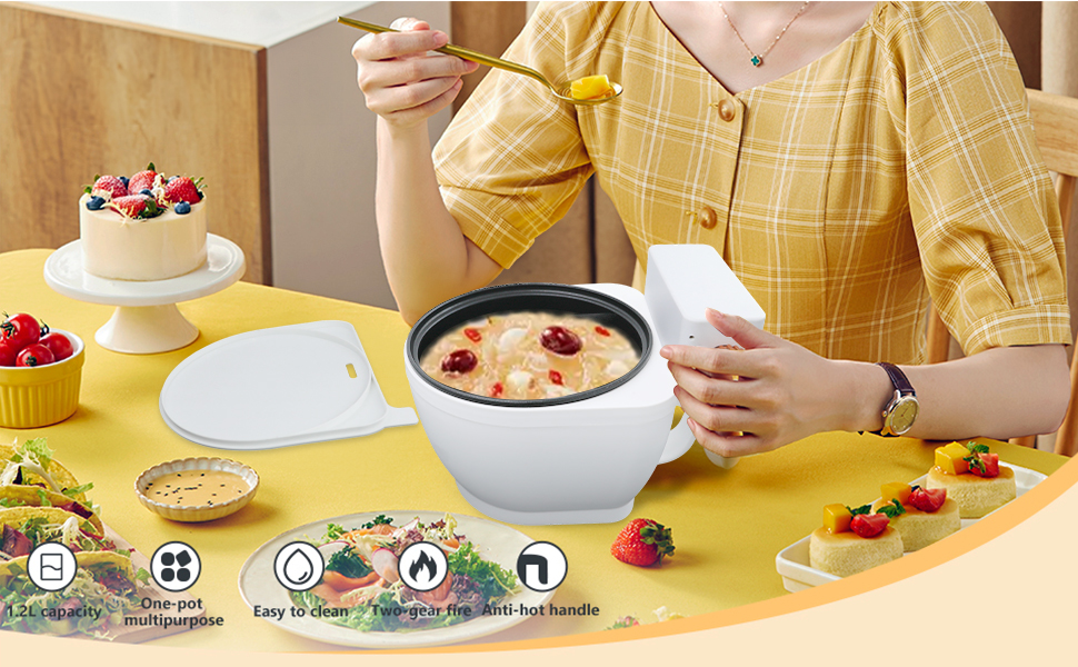 طهي متعدد الوظائف: مع أوضاع طهي متعددة، يمكن استخدامه كطباخ بطيء وجهاز بخار. سواء كان الطبخ أو البيض أو الرامين أو دقيق الشوفان أو الحساء، فإن هذا الوعاء الكهربائي الساخن يمكن أن يلبي الاحتياجات، ويمكن استخدامه أيضًا لطهي كميات صغيرة.