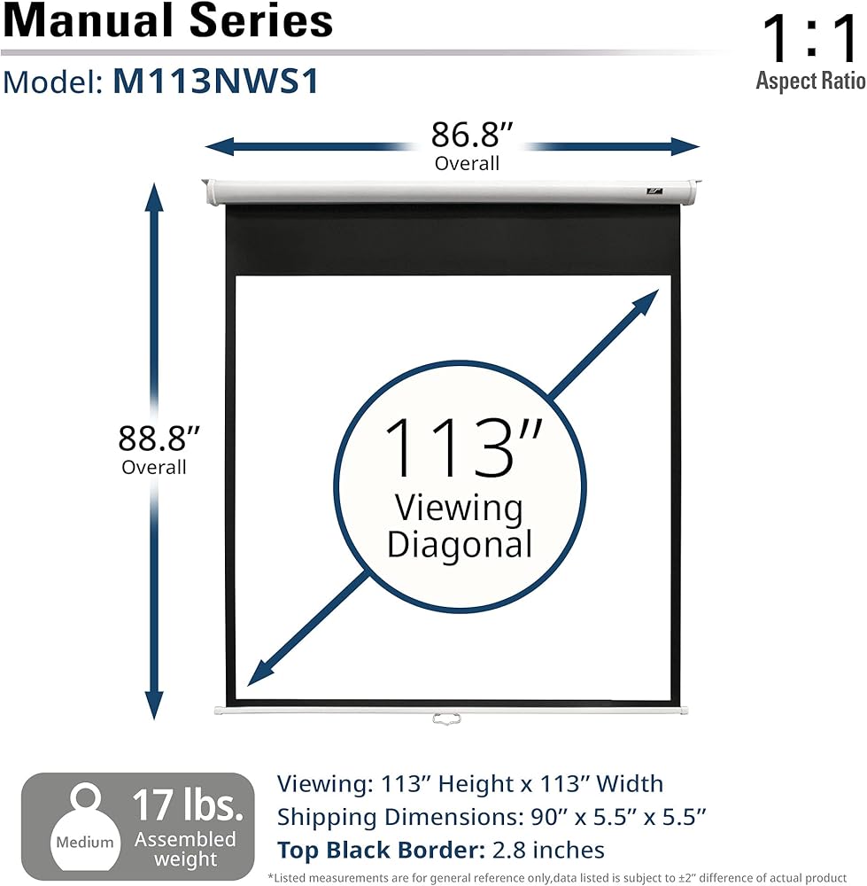 Elite Screens Manual Series is a well made and affordable projector screen for any professional video presentation and is perfect for home theatres, businesses, and classrooms.