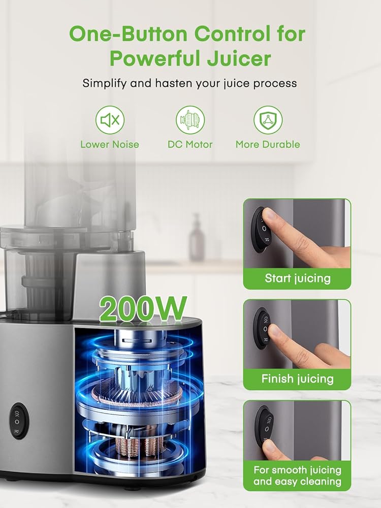 تحكم قوي وسهل: تستخدم العصارة مزيجًا من الطاقة العالية 200 واط والسرعة المنخفضة البالغة 120 دورة في الدقيقة، مما يعرض الأطعمة لأكسجين أقل مما يحافظ على قوة الإنزيم والمغذيات وينتج قيمة غذائية أعلى بشكل عام. التشغيل سهل من خلال زر واحد فقط للتحكم في كل عملية العصر من بداية العصر حتى النهاية. تم تعزيز تصميمها سهل الاستخدام من خلال وظيفة عكسية، والتي تمنع الانسداد بشكل فعال وتضمن عصرًا أكثر سلاسة ودون انقطاع.
