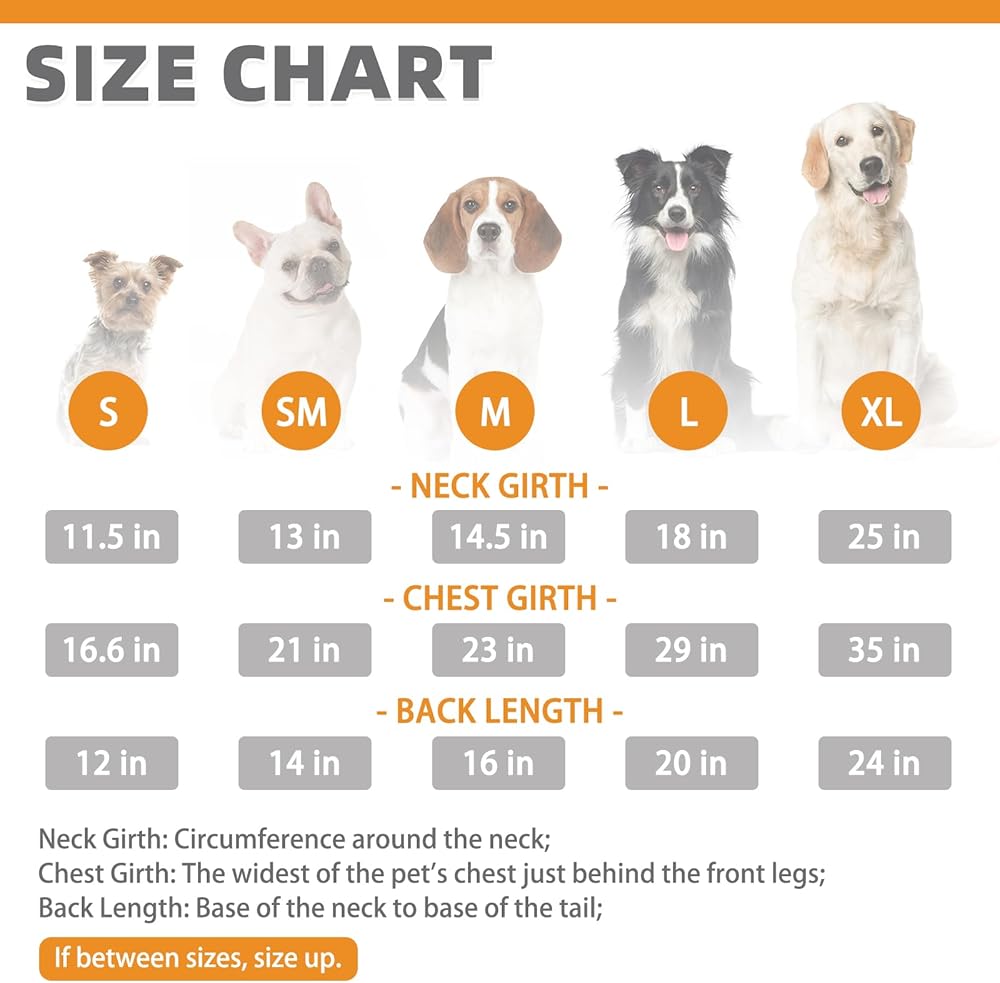 المقاس M: محيط الرقبة: 13 بوصة، محيط الصدر: 22 بوصة، طول الظهر: 16 بوصة. قبل الشراء، يرجى قياس محيط رقبة كلبك ومحيط صدره بعناية وترك مساحة مناسبة لراحة كلبك.