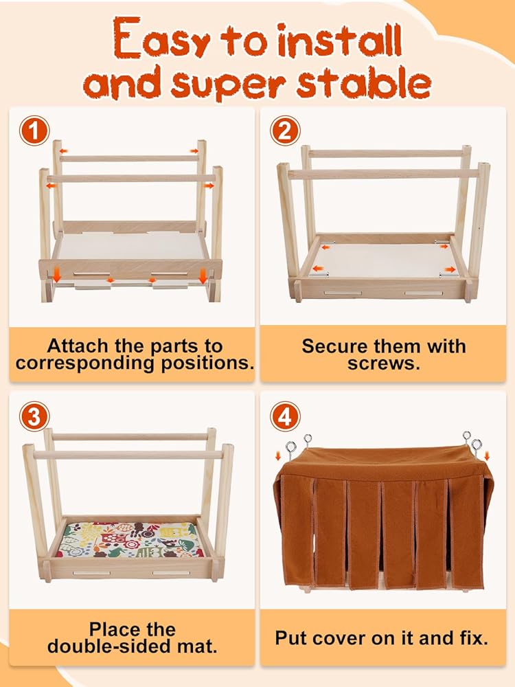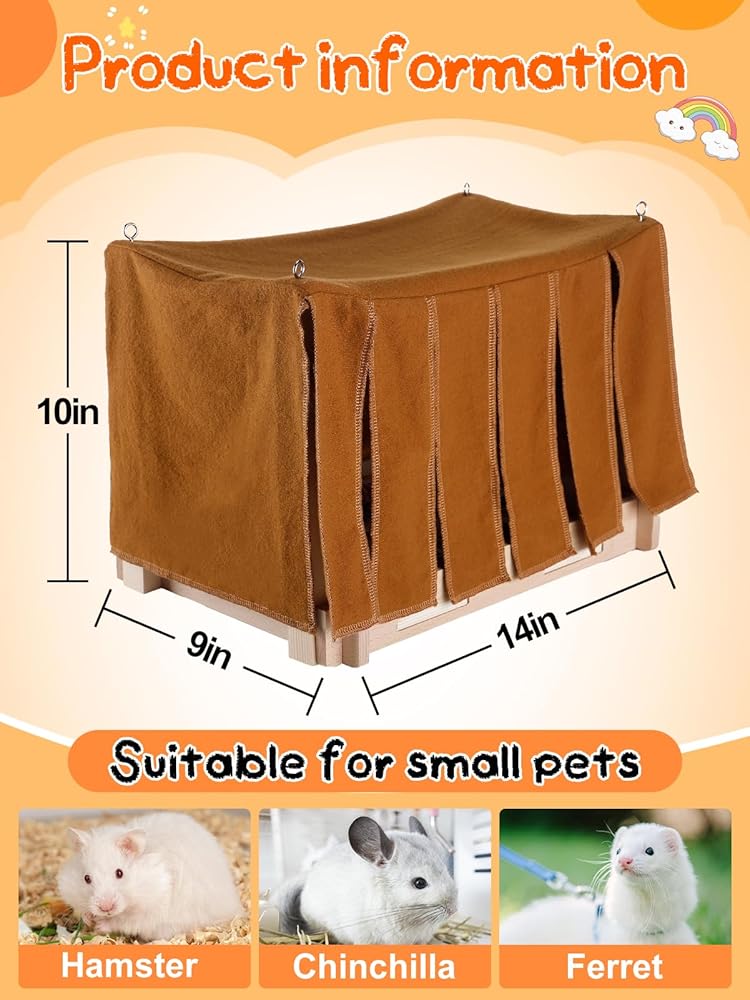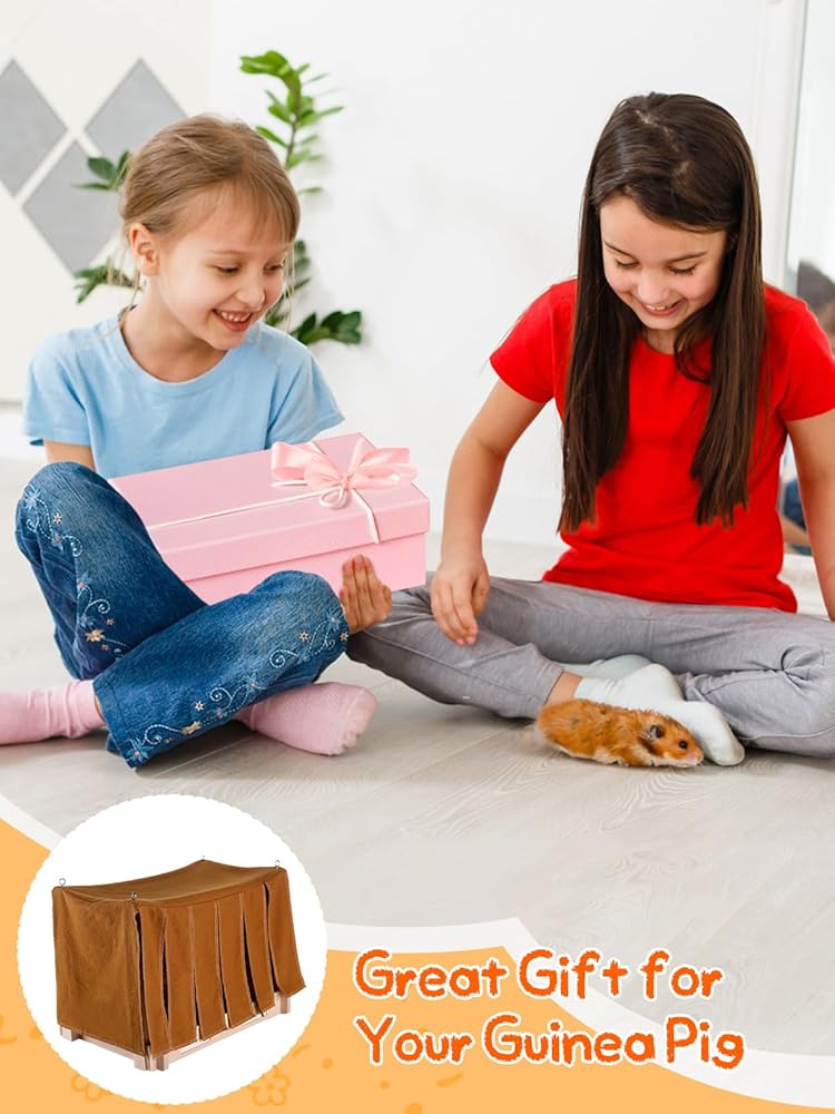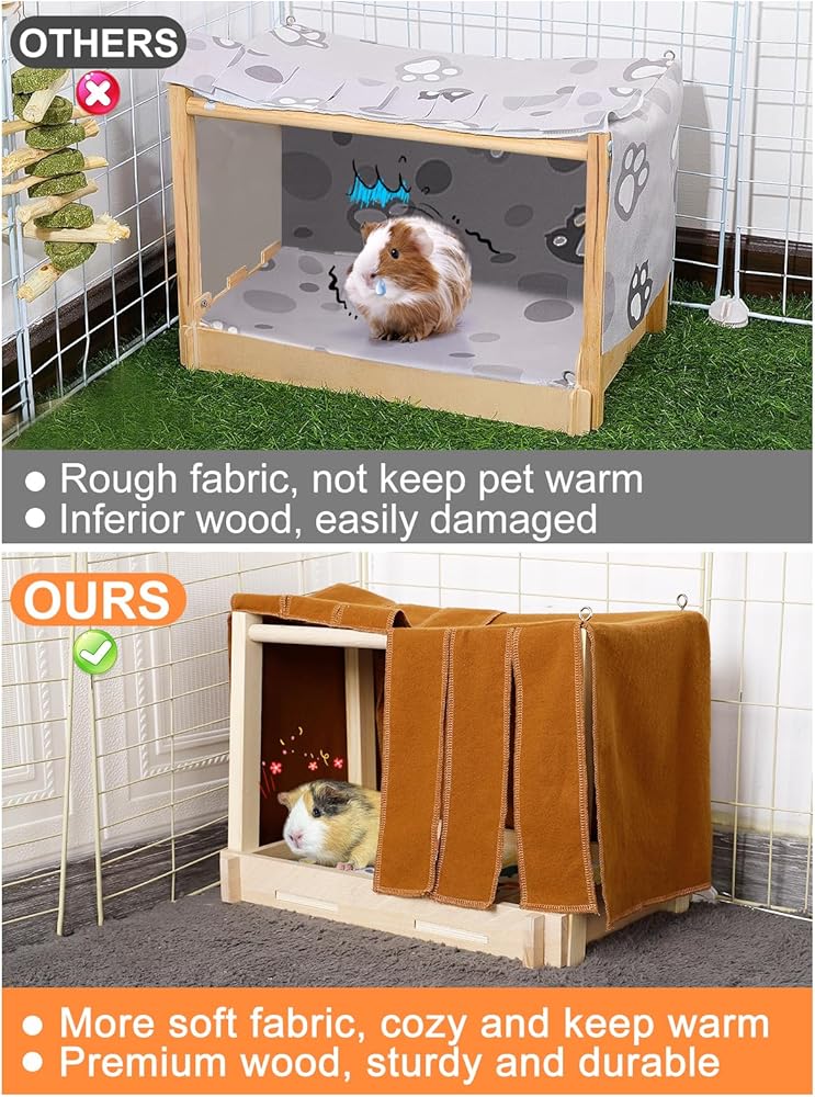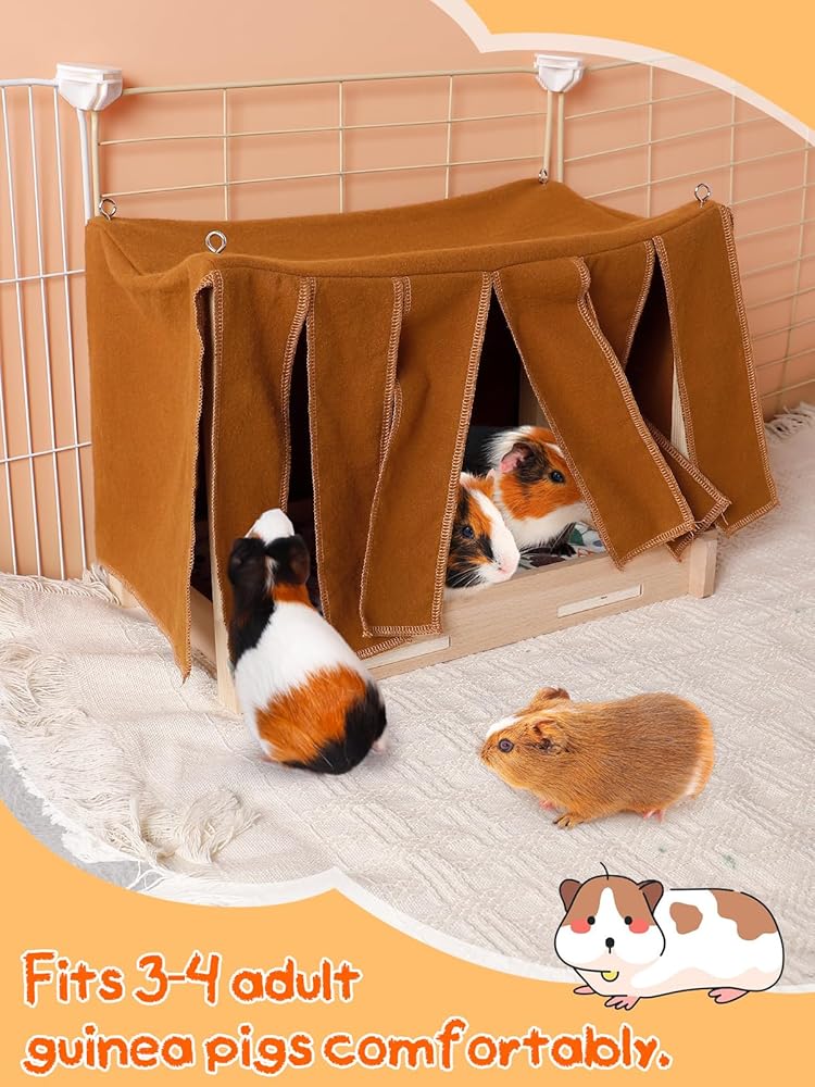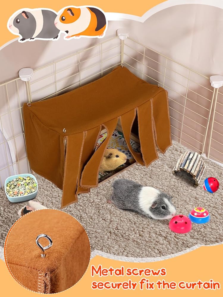 CREATE SAFE HAVEN: This guinea pig hideout features soft brown curtains, offering your pets a cozy, private space. When guinea pigs feel nervous or frightened, they can quickly retreat to this enclosed spot, providing them with a sense of security and comfort.