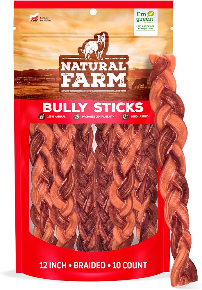 Choose the best and healthier dog treats for your best friend with Natural Farm Braided Bully Sticks crafted with genuine beef!