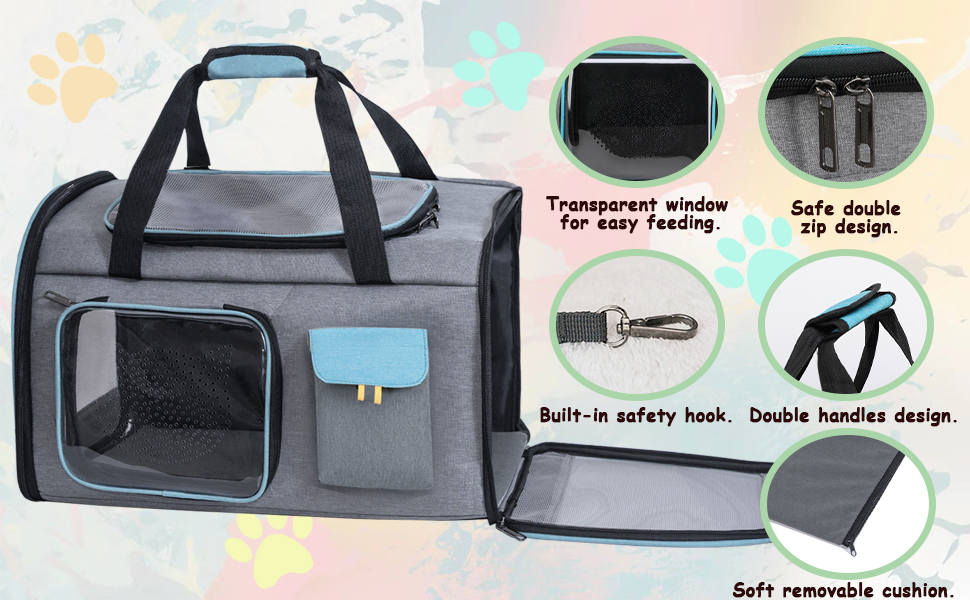 [حاملة القطط ذات الجوانب الناعمة القابلة للطي والمحمولة] تأتي حاملة القطط ذات الجوانب الناعمة هذه بطريقتين مختلفتين من الأشرطة ويمكن حملها باليد أو على الكتف أو كحقيبة من القماش الخشن. مريحة جدًا لحمل حيوانك الأليف المحبوب في أي مكان. كما أنها قابلة للطي ويمكن طيها لسهولة التخزين.