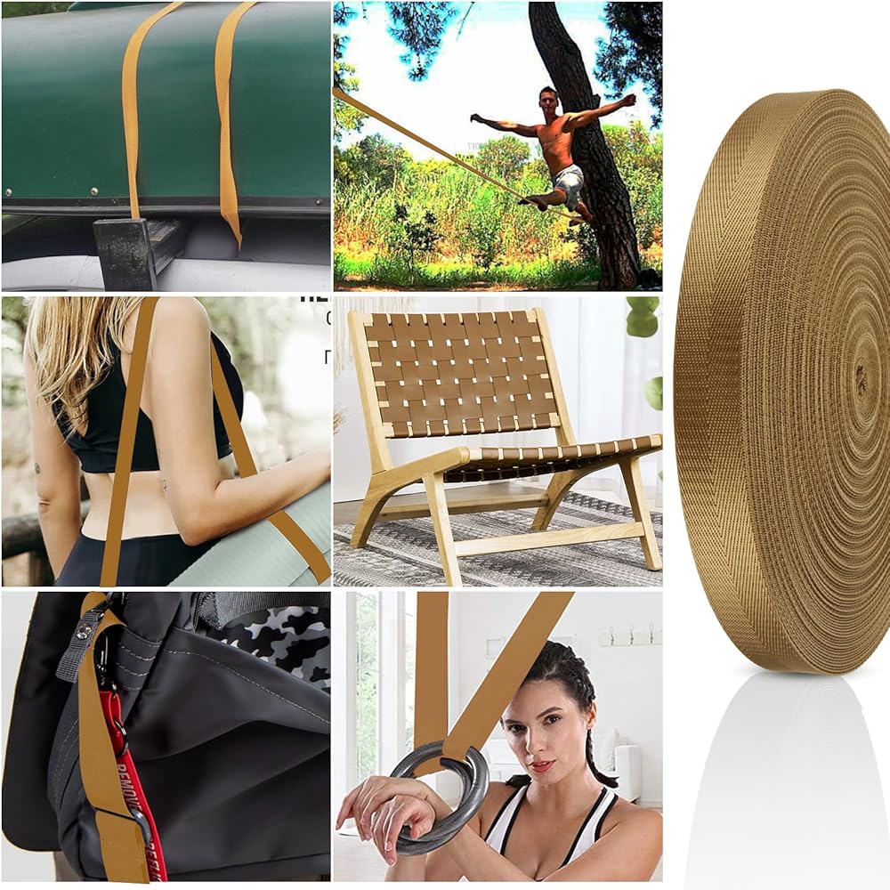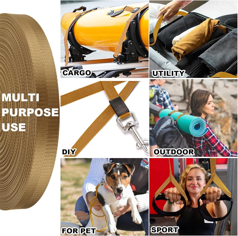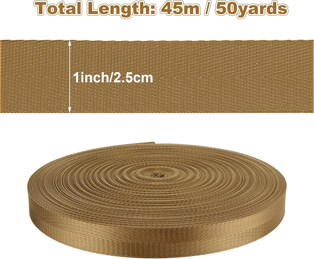 AKOLAFE 50 Yards Nylon Webbing 1 Inch Nylon Strap, 1 Nylon Webbing Strap, Heavy Duty Chair Webbing Strap for Bags, Seatbelt, Backpack, Belt, Pet Leash & Collar, Gear Repair, Outdoor Sports, Utility, DIY etc