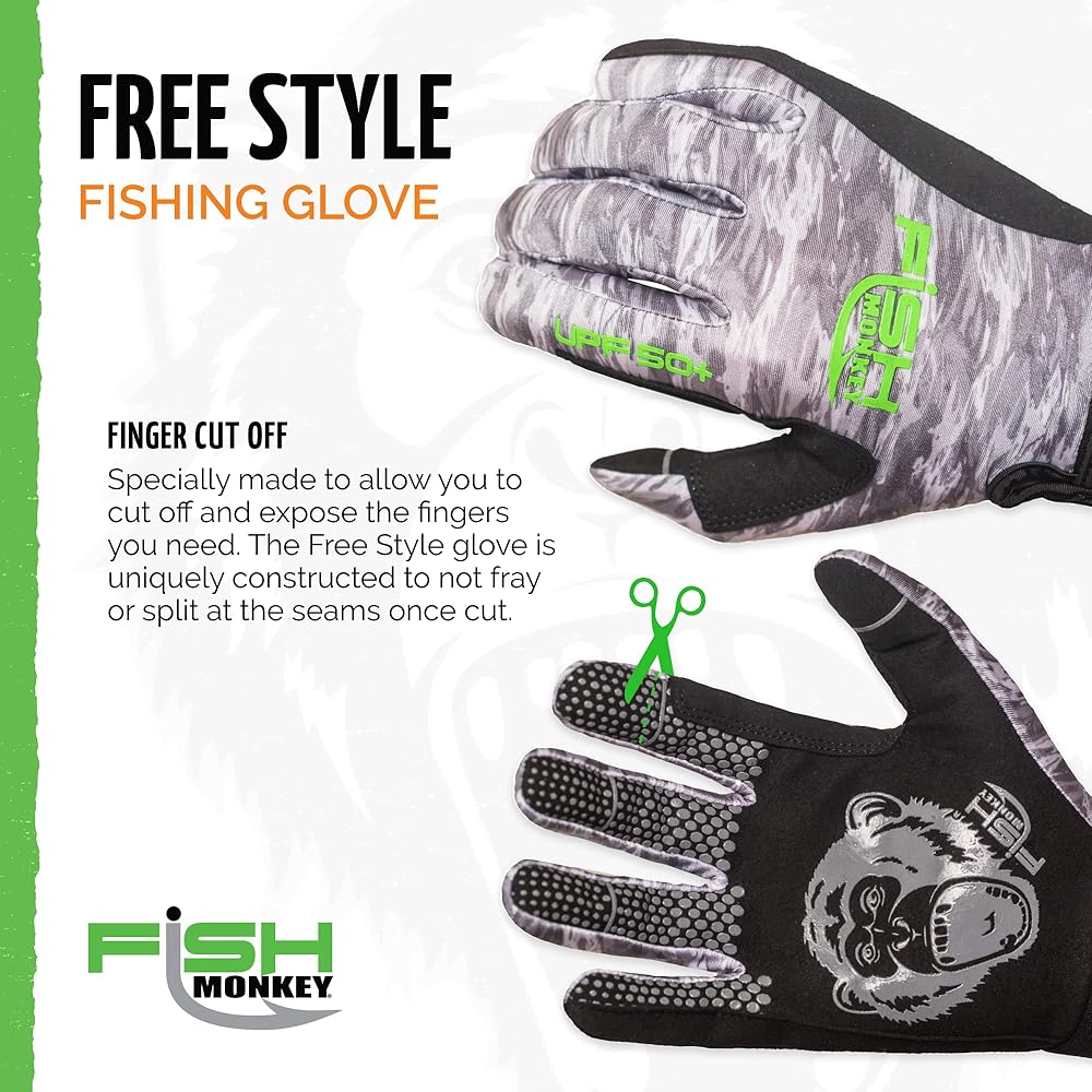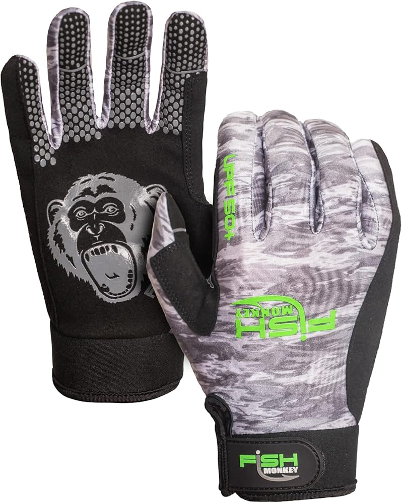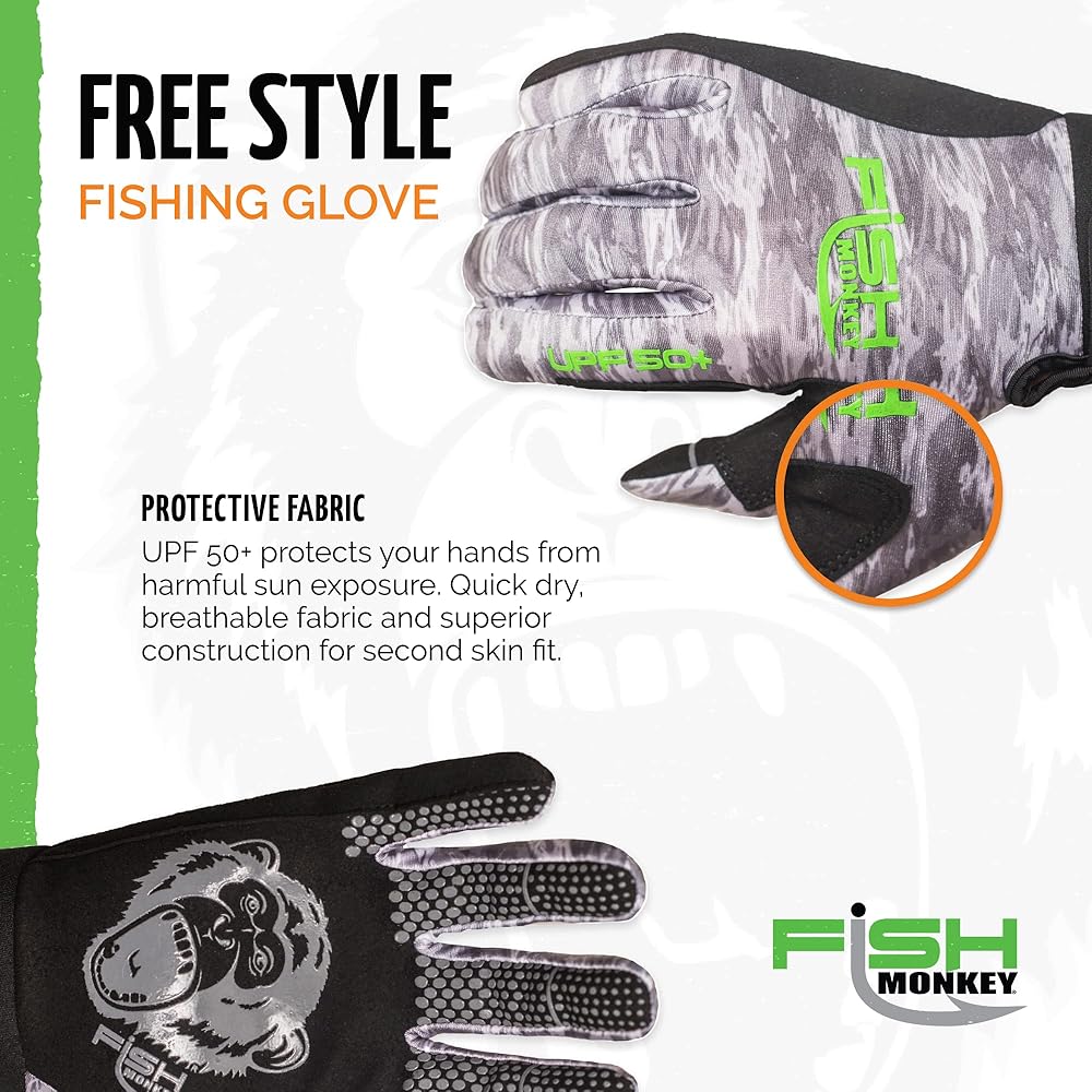 قرد السمك بعامل حماية من الأشعة فوق البنفسجية 50+ لا يتآكل عند قطع الأصابع. قبضة فائقة مضادة للانزلاق، وسادات أسلاك خاصة على أصابع الإبهام/السبابة وجانب القفازات للرجال والنساء