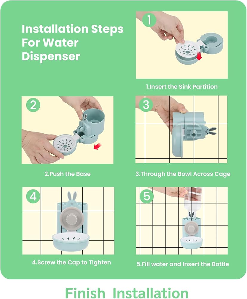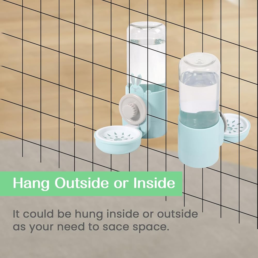 • [Cage Hanging Design] This rabbit waterer dispenser is for cage hanging, which is not only help saving space to install outside or inside the pet cage, but also alleviate the discomfort of neck caused by head up or down while drinking. By the way, cage hanging could also prevent to knock off the bowl and keep the area clean.