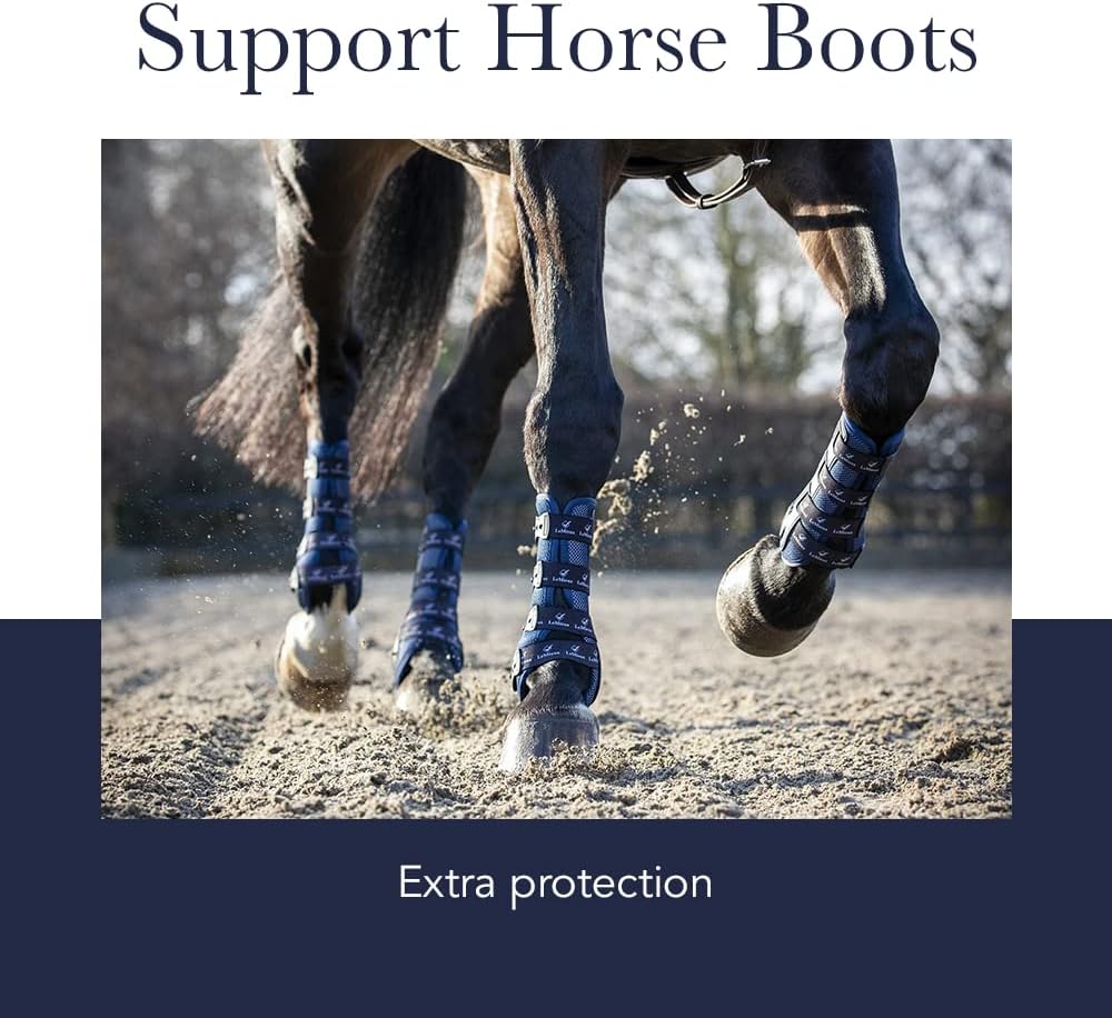 حماية إضافية - مصمم خصيصًا لحماية الأوتار المعلقة والرقمية من التمدد المفرط ودعم المفاصل عند الضغط، مما يجعل هذه الأحذية مثالية بعد الإصابة وإعادة التأهيل. يمكن استخدامها أيضًا كإجراء وقائي للخيول والمهور الأكبر سنًا أو الأكثر ضعفًا.