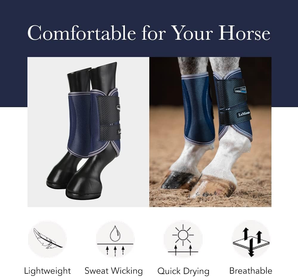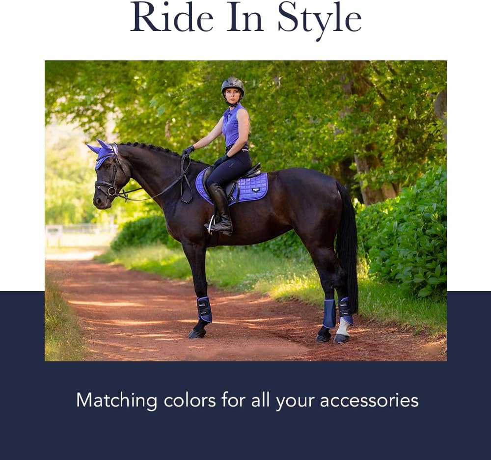 للساقين الأمامية والخلفية - مصنوعة من مادة AirPrene المثقبة مع بطانة قطنية مطاطية، مما يسمح بالتهوية الشاملة ويمنع الاحتكاك وتراكم العرق. تم تشطيبه بأشرطة علوية من الجلد السويدي. مناسبة للاستخدام على الأرجل الأمامية والخلفية وتباع في أزواج.