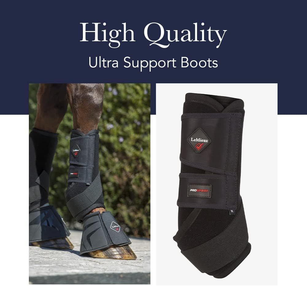 دعم فائق - تجمع أحذية الدعم الفائق الجديدة هذه بين تصميم حذاء LeMieux Support الذي تم تجربته واختباره مع حزام ربط سفلي إضافي ملتف، مما يوفر مستوى محسنًا من الدعم لقفل القدم والأوتار. ينصح العديد من الأطباء البيطريين وأخصائيي العلاج الطبيعي باستخدام أحذية Ultra Support.