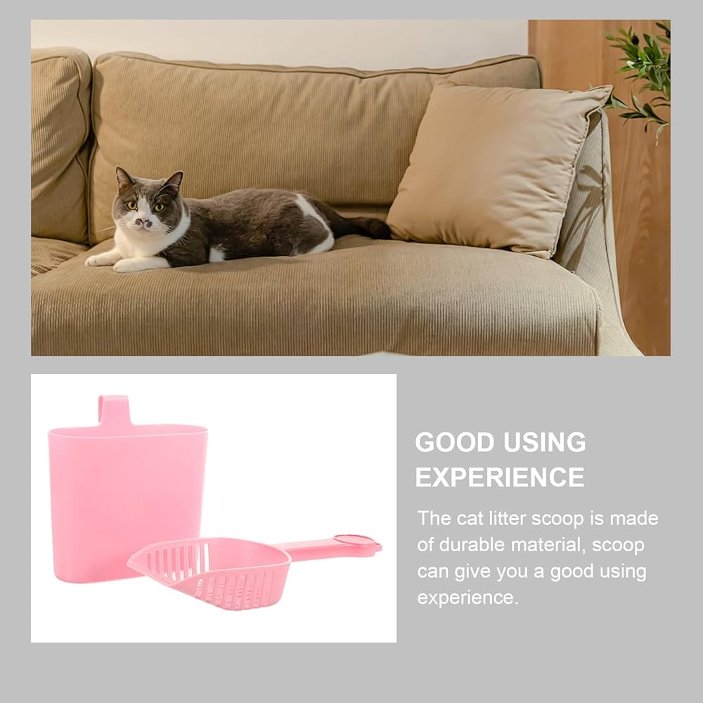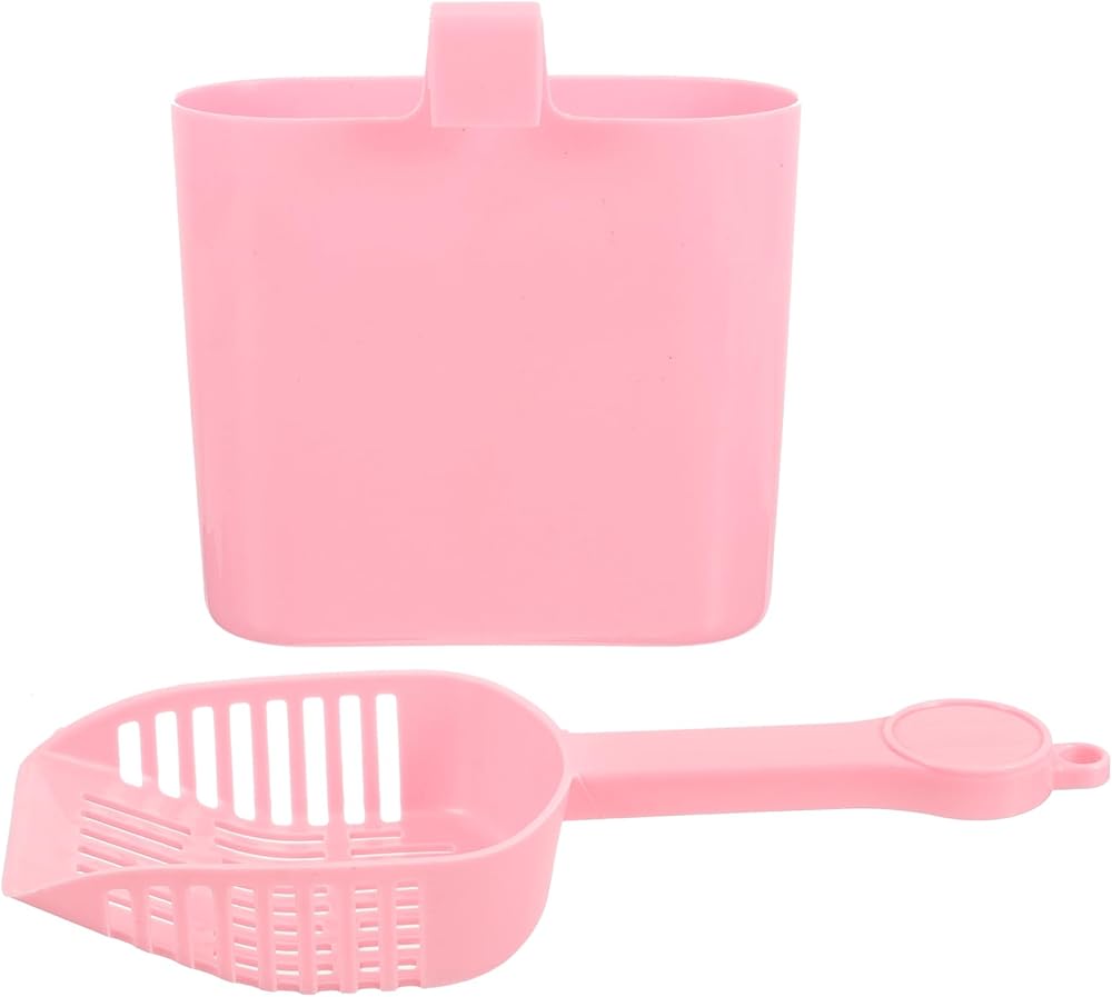 Mipcase 1 مجموعة القط القمامة مغرفة دعوى القط القمامة أداة نظيفة الحيوانات الأليفة القمامة مجرفة المحمولة الحيوانات الأليفة القمامة مجرفة البلاستيك القط صندوق القمامة الوردي رشاقته القط القمامة مغرفة حامل القط مغرفة مجرفة