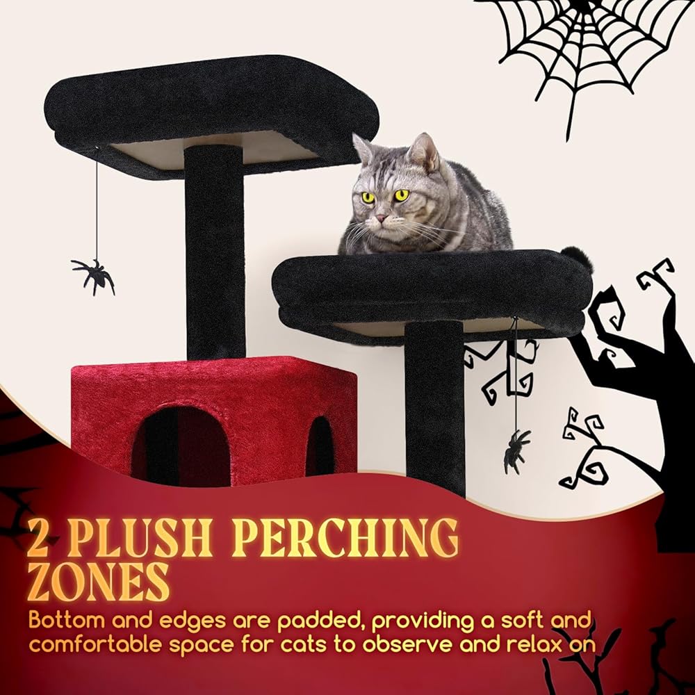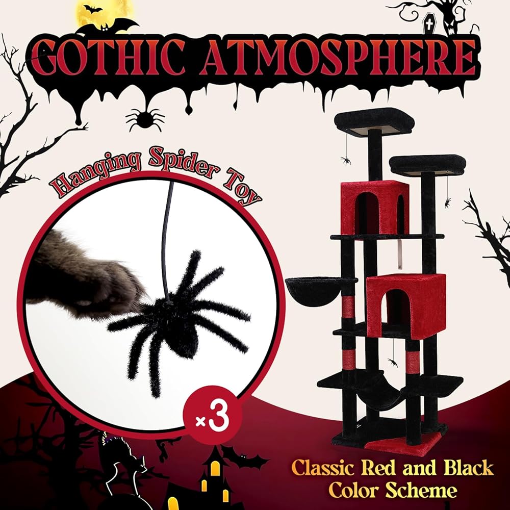 جماليات قوطية آسرة: اسمح لقططك الداخلية باستكشاف عالم غامض من خلال شجرة القطط المخيفة التي تتميز بتصميم قوطي آسر بألوان حمراء وسوداء مذهلة. رائعة لأثاث الهالوين في الأماكن المغلقة، شجرة القطط الفريدة هذه للقطط الكبيرة لا تثير اهتمام القطط فحسب، بل تضفي أيضًا لمسة شخصية فريدة على مساحتك الخاصة.