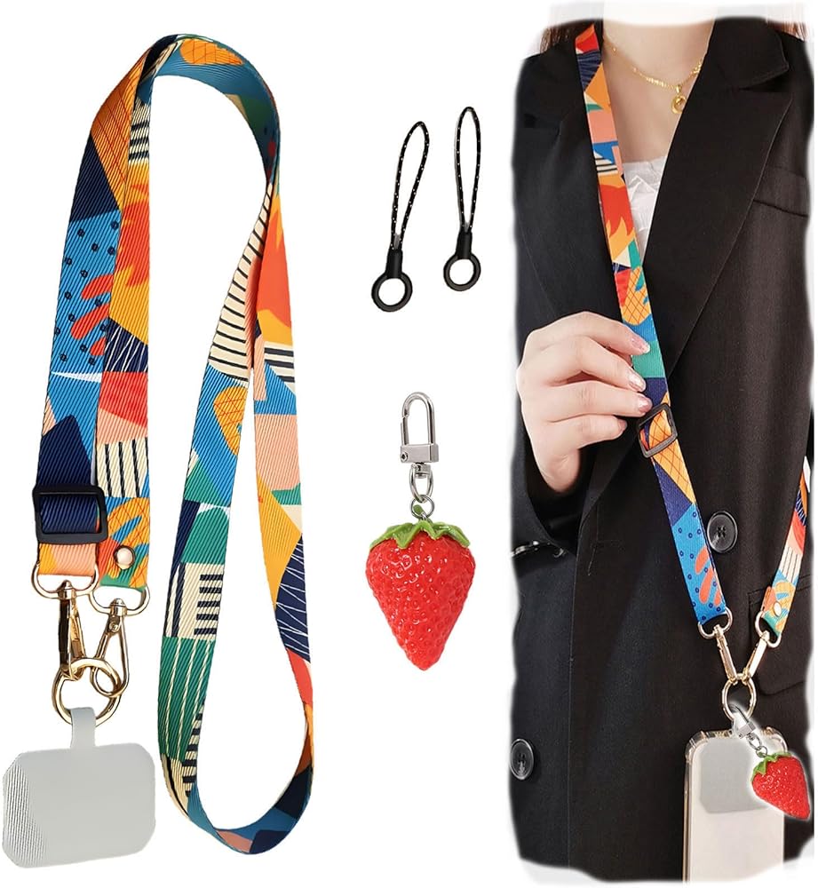 【ما تحصل عليه: 1 × حبل هاتف حول الجسم (الطول الإجمالي: 120 سم)، 1 × قلادة سلسلة مفاتيح طعام مبتكرة.