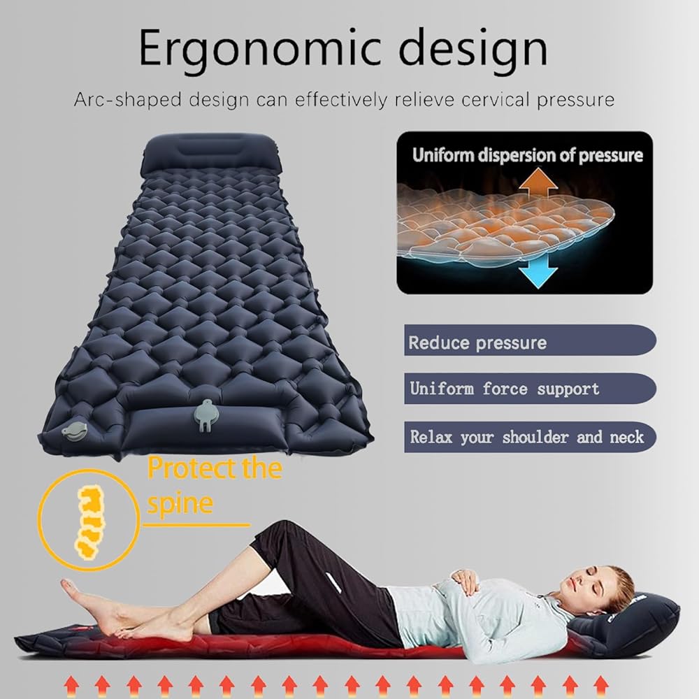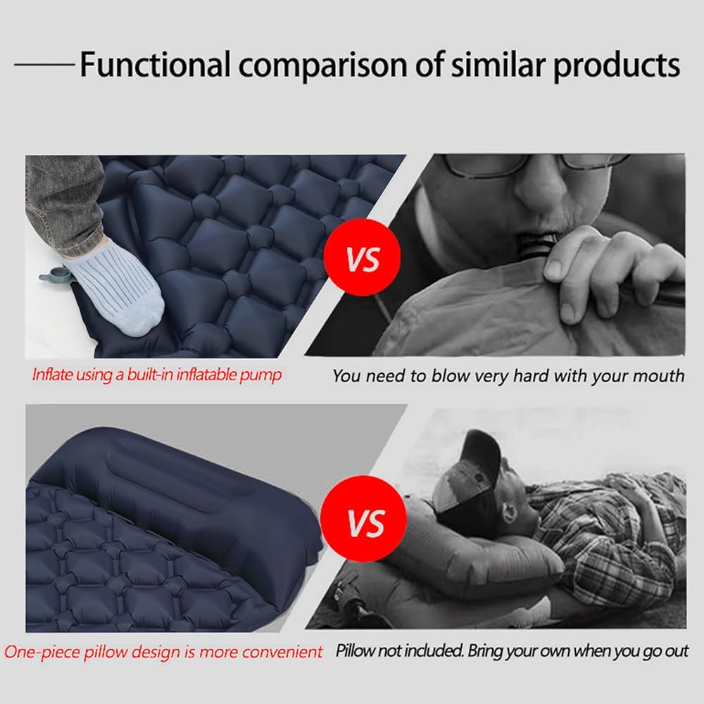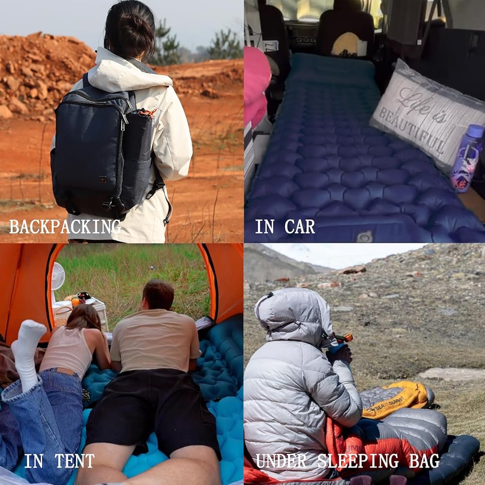 【سريعة وسهلة النفخ والتفريغ】 مضخة قدم مدمجة - وسادة النوم القابلة للنفخ هذه لا تتطلب منك شراء مضخة أو حشو هواء وحده. جزء القدم مجهز بمضخة هواء من نوع القدم. على عكس طرق تعبئة الهواء التقليدية مثل مضخة الهواء الكهربائية ومضخة الهواء اليدوية، سيتم شحن بساط النوم الخاص بنا للتخييم بالكامل بالقدم عن طريق الضغط على مضخة الهواء لإكمال الهواء. من السهل إكمال النساء والأطفال وكبار السن ويمكن إكمالهم بسهولة في دقائق.