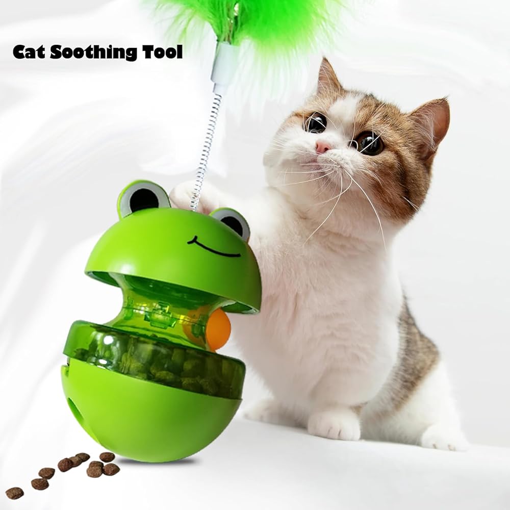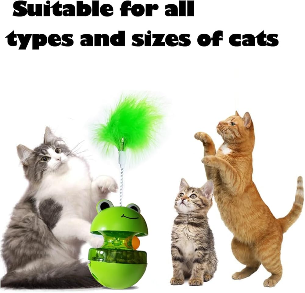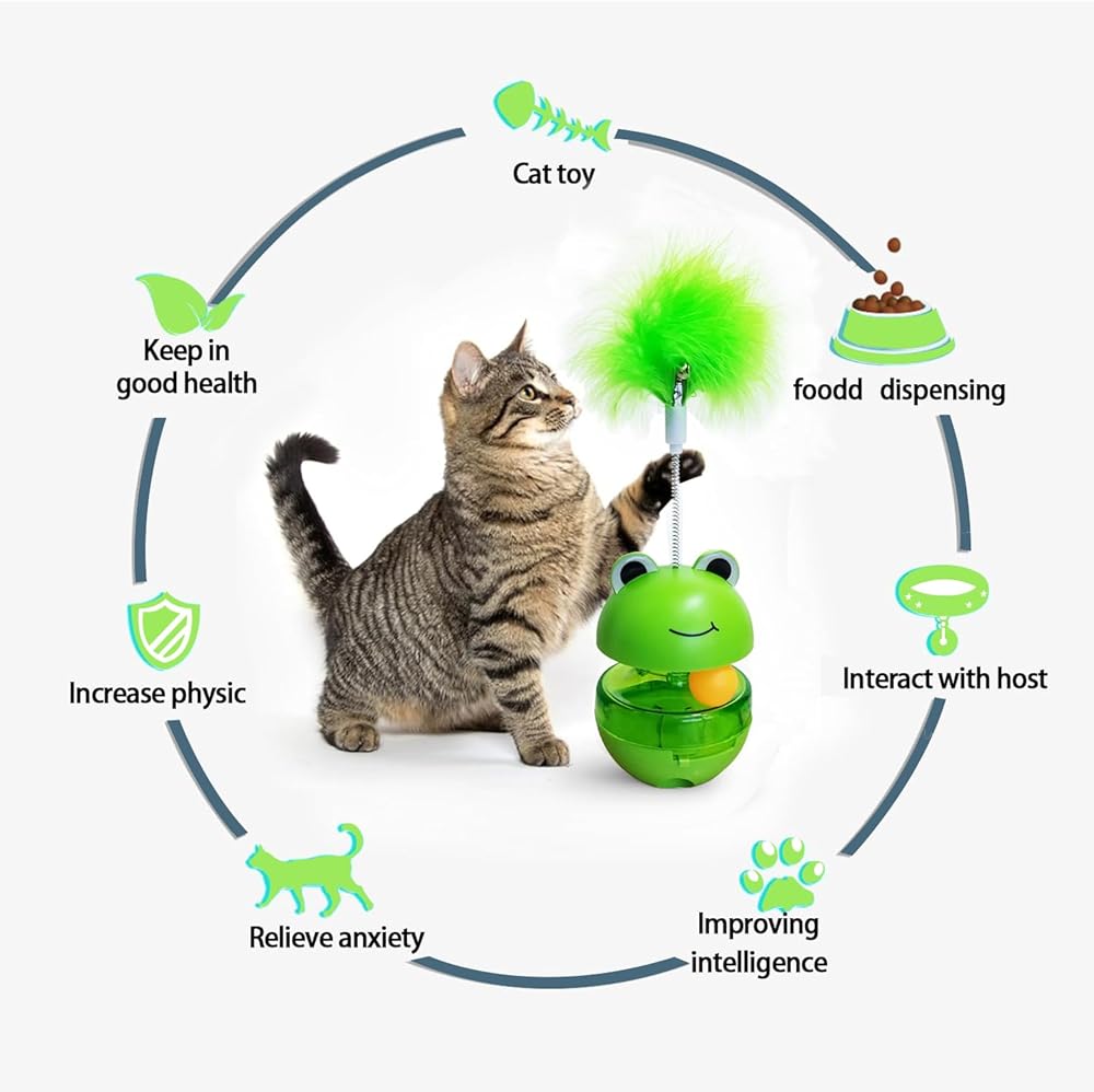 cat track toy with Feather, This not just any cat toy; it's a multifaceted puzzle feeder and interactive feeder that taps into your pet's natural instincts. The unique tumbler design ensures it wobbles intriguingly, never tipping over, making it the perfect indoor activity for your feline. With the addition of rattle balls and a wand, this toy combines auditory and tactile stimulation, keeping your cat engaged and entertained.Tailored Feeding Adventure This cat treat puzzle toy goes beyond mere play; it's a clever solution for your cat's dietary needs. With adjustable treat dispensing settings, it doubles as a slow feeder, promoting healthier eating habits. The transparent compartment of this cat feeder toy allows for easy monitoring of food levels, ensuring your pet is rewarded for their persistence. It's not just a game; it's a way to enhance your cat's agility and intellect, making every treat a well-earned prize.Built for Lasting Fun Safety and durability are paramount in the design of our cat interactive feeder. Crafted from robust PP materials, it stands up to the enthusiastic play of even the most energetic cats. This cat treat dispenser toy is designed with your pet's well-being in mind, featuring smooth, safe edges and a non-toxic build. Easy to clean and maintain, it represents a hassle-free addition to your pet care arsenal, promising endless hours of fun and engagement.